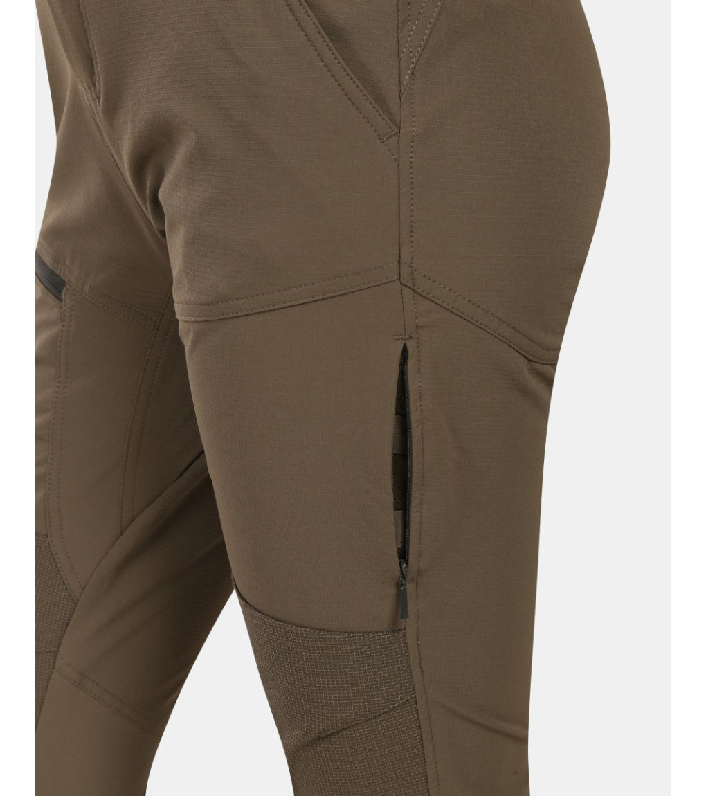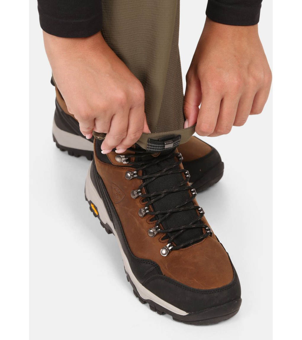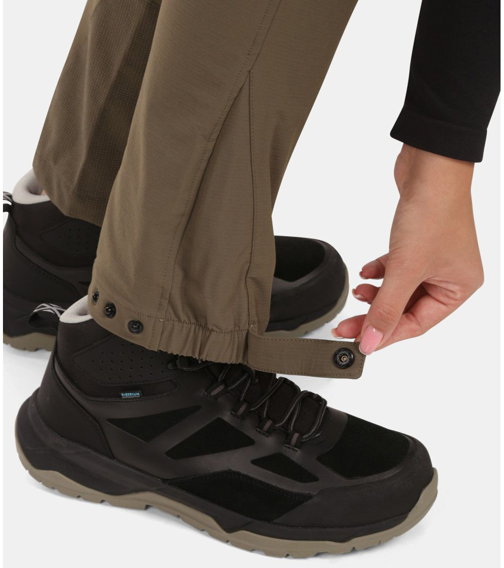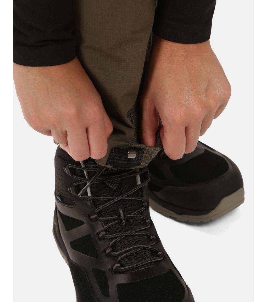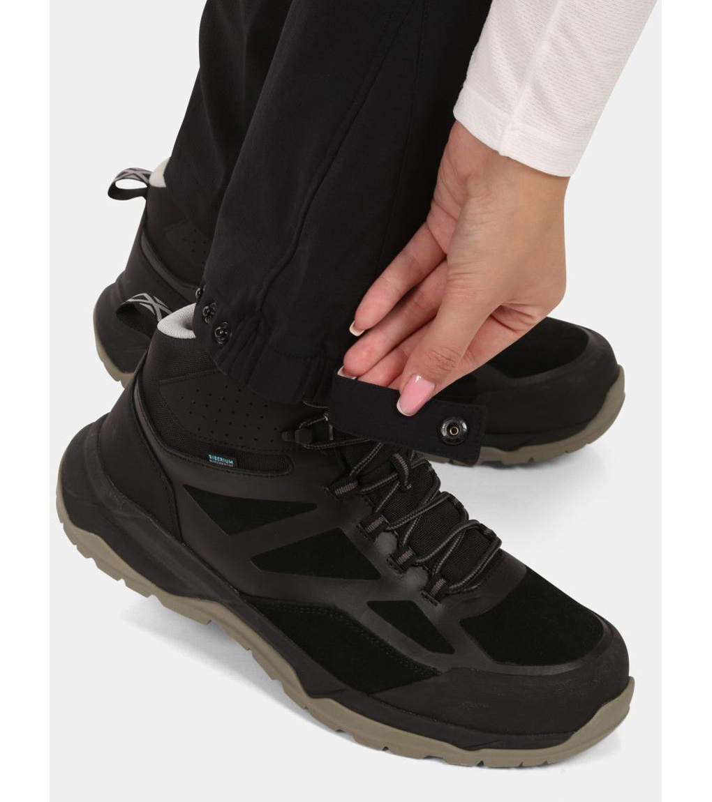 Spodnie Kilpi VILLAIN-W z kategorii spodni softshell do aktywności na świeżym powietrzu, pieszych wędrówek czy prac ogrodniczych. Wykonane z wytrzymałego, tkanego materiału softshell o strukturze ripstop, która zwiększa wytrzymałość i odporność na uszkodzenia. Elastyczność materiału w połączeniu z dopasowanym krojem i klinem w kroku gwarantują nieograniczoną swobodę ruchów. Spodnie zapinane są na metalowe napy, mają gumkę w pasie i szlufki na pasek. Praktycznym dodatkiem są boczne otwory wentylacyjne, które poprawiają wentylację i komfort termiczny. Spodnie mają dwie kieszenie oraz jedną kieszeń na zamek na udzie. Nogawki można dopasować do butów outdoorowych za pomocą metalowych nap i haczyka do sznurowadeł. Krytyczne miejsca na kolanach i wewnętrznej stronie nogawek zostały wzmocnione podwójną warstwą materiału odpornego na przetarcia. Jeśli lubisz przygody w każdej postaci, nie wahaj się dodać do swojej garderoby naszych nowych spodni Kilpi VILLAIN-W w neutralnej czerni.