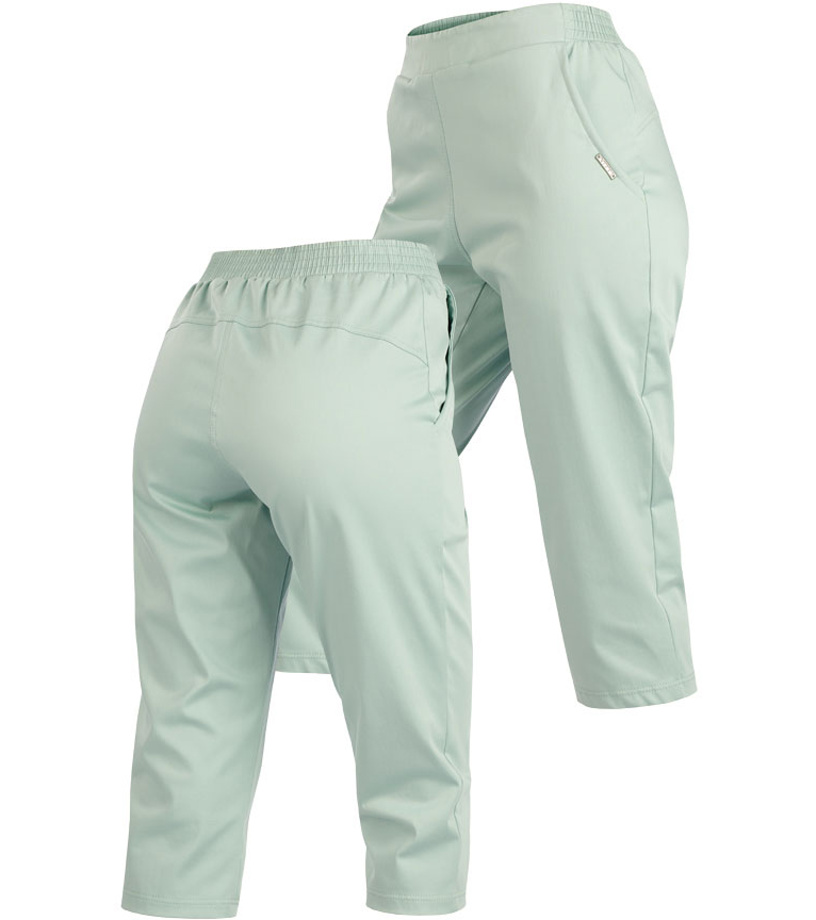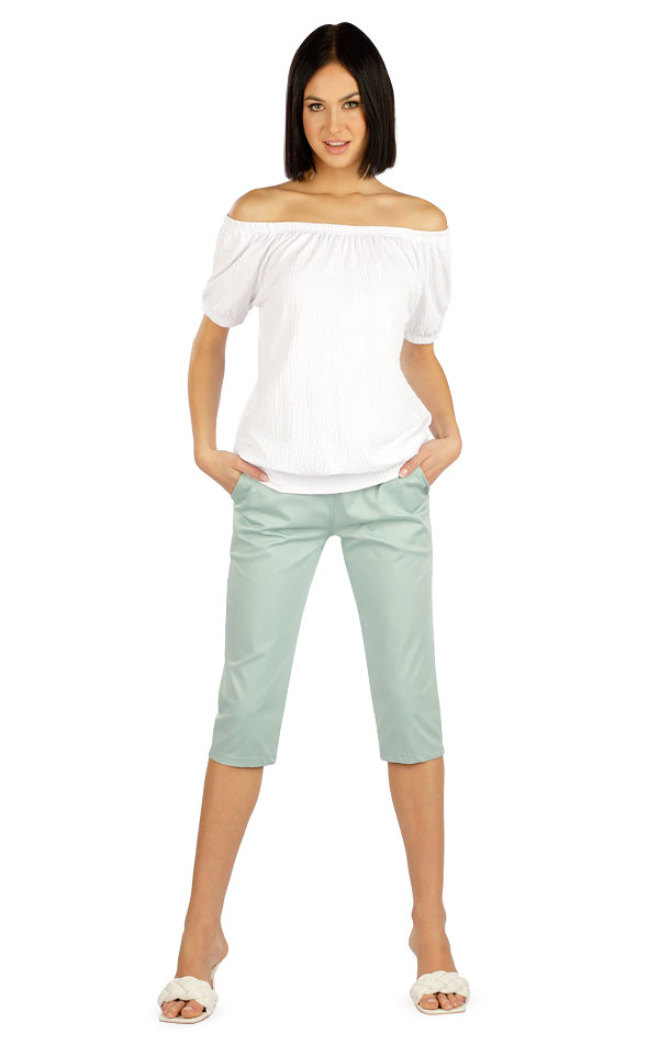 Spodnie damskie o długości 3/4. Wyższy stan z elastyczną talią i bocznymi kieszeniami. Dopasowany krój z rozcięciem z tyłu i długością do kolan. Przyjemny w dotyku materiał gwarantuje maksymalny komfort noszenia.