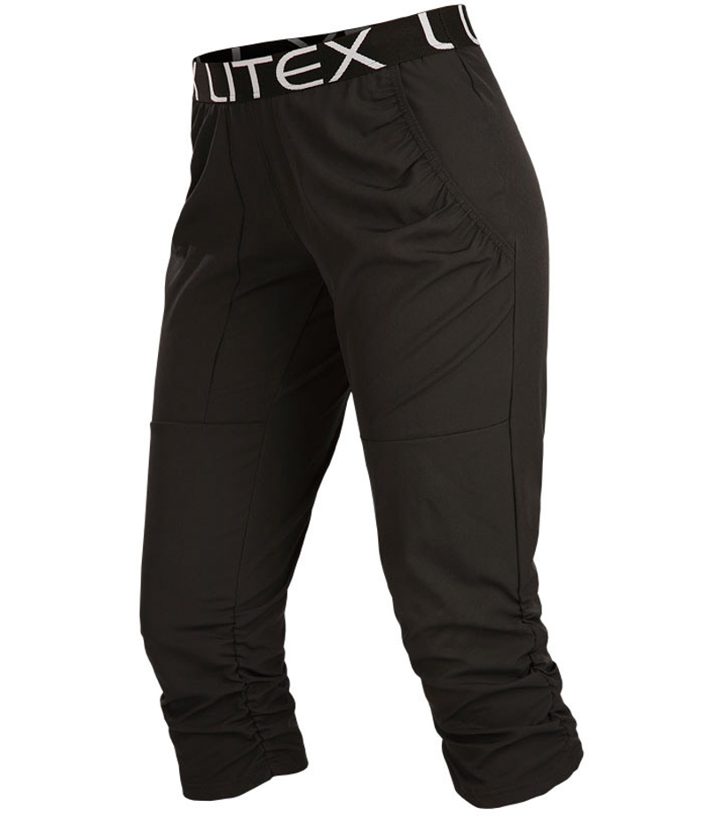 Spodnie damskie 3/4. W pasie elastyczna, tkana gumka z logo. Kieszenie boczne i dół nogawek mają zakładki. Materiał, z którego są wykonane, gwarantuje doskonałą lekkość i swobodę ruchów. Spodnie te nadają się do uprawiania sportu i wypoczynku. Doskonale uzupełni Twój strój.