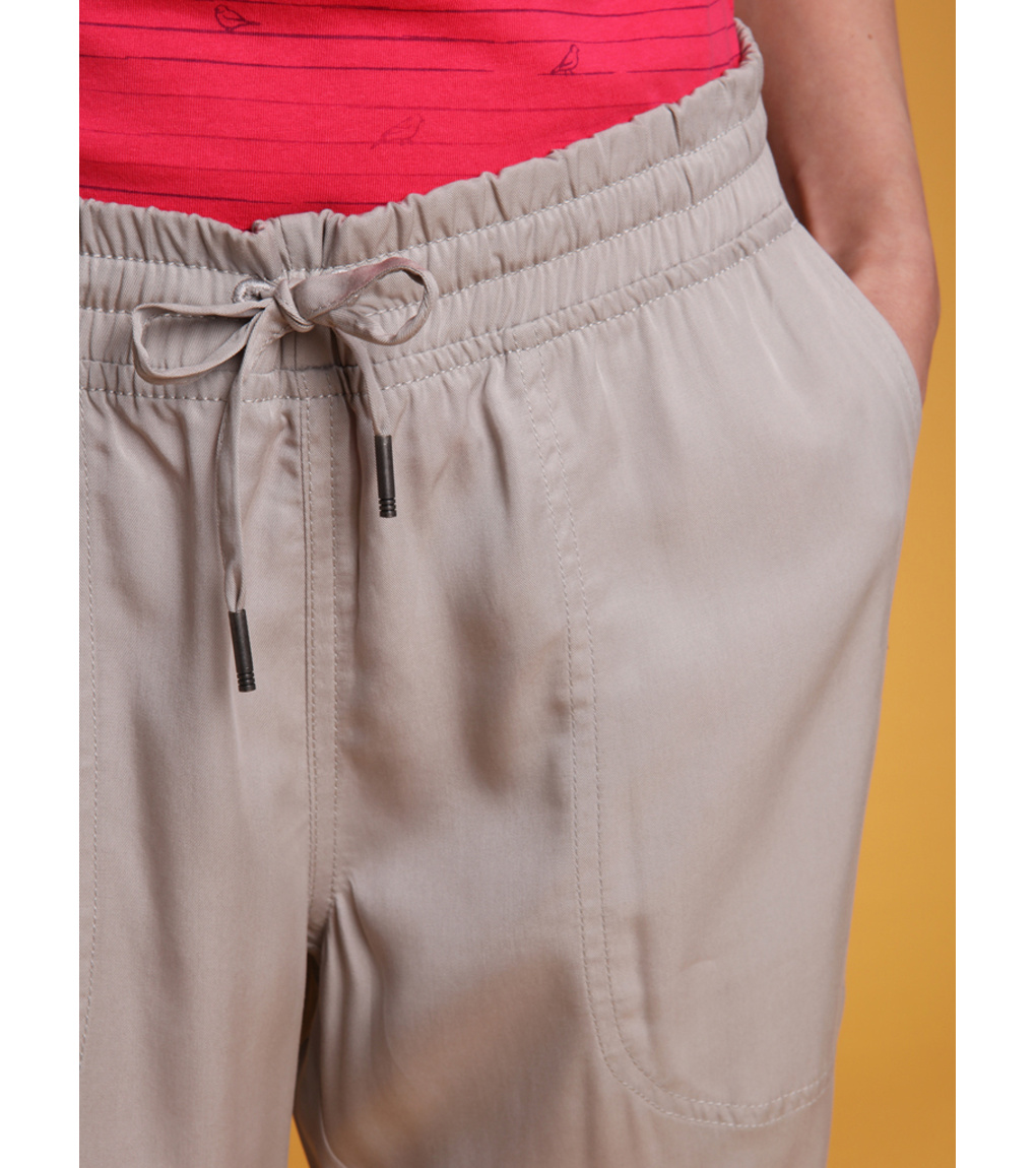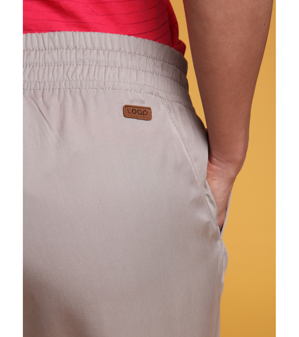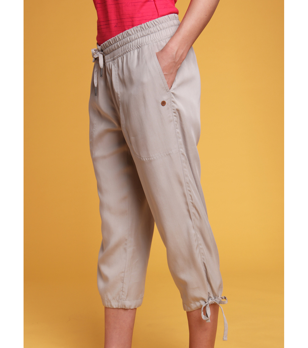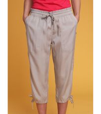 Damskie spodnie 3/4 LOAP NALIS wykonane są w 100% z naturalnego włókna Tencel. Materiał ten grzeje wiosną/jesienią, a latem chłodzi. Mają luźny krój, elastyczny pas, a nogawki mają sznurek do regulacji. Gramatura 160 g/m2 plasuje te spodnie 3/4 z dwiema kieszeniami wśród trzech sezonów - możesz nosić je od wiosny do jesieni.