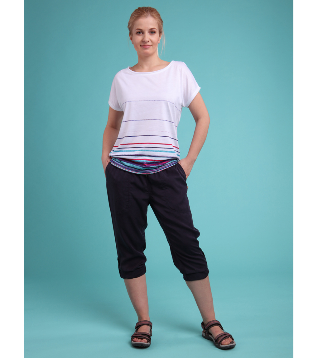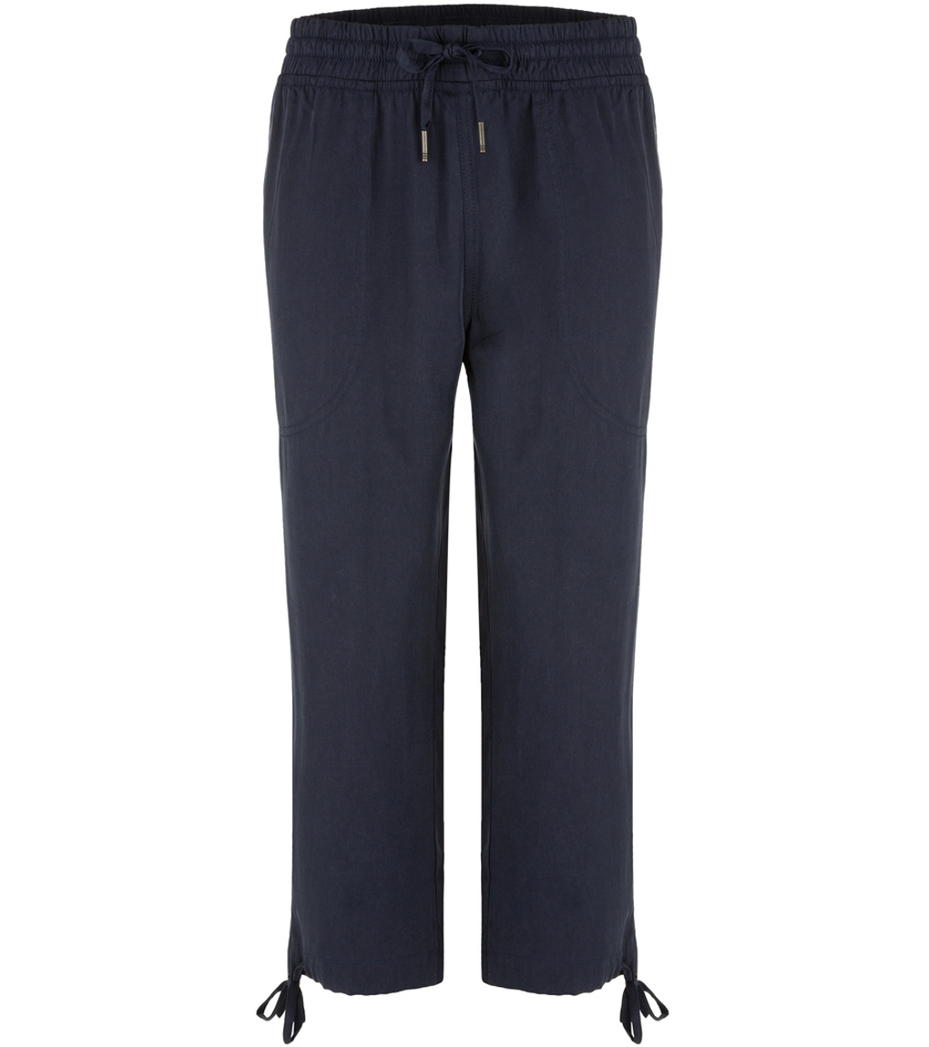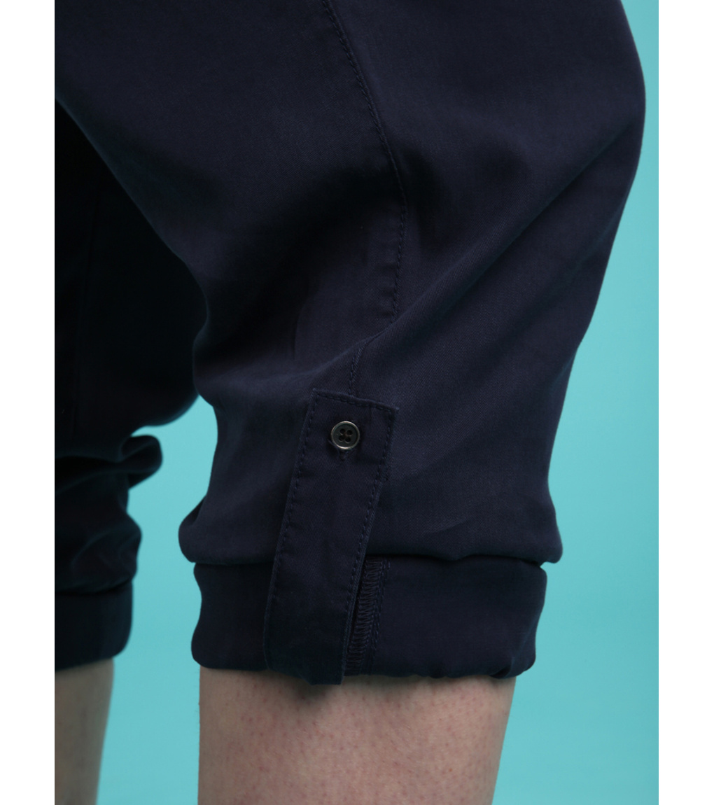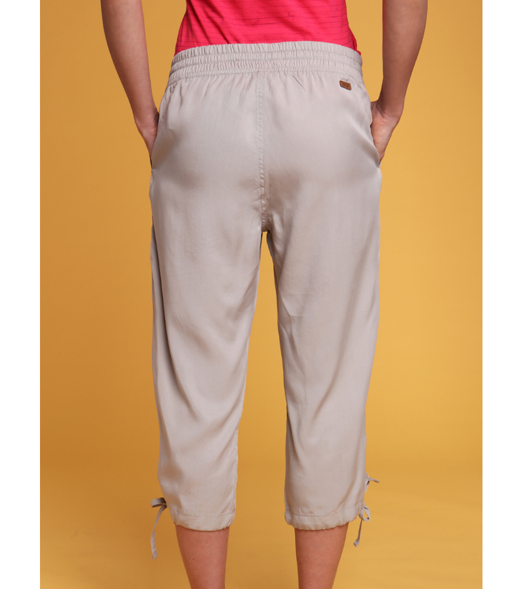 Damskie spodnie 3/4 LOAP NALIS wykonane są w 100% z naturalnego włókna Tencel. Materiał ten grzeje wiosną/jesienią, a latem chłodzi. Mają luźny krój, elastyczny pas, a nogawki mają sznurek do regulacji. Gramatura 160 g/m2 plasuje te spodnie 3/4 z dwiema kieszeniami wśród trzech sezonów - możesz nosić je od wiosny do jesieni.