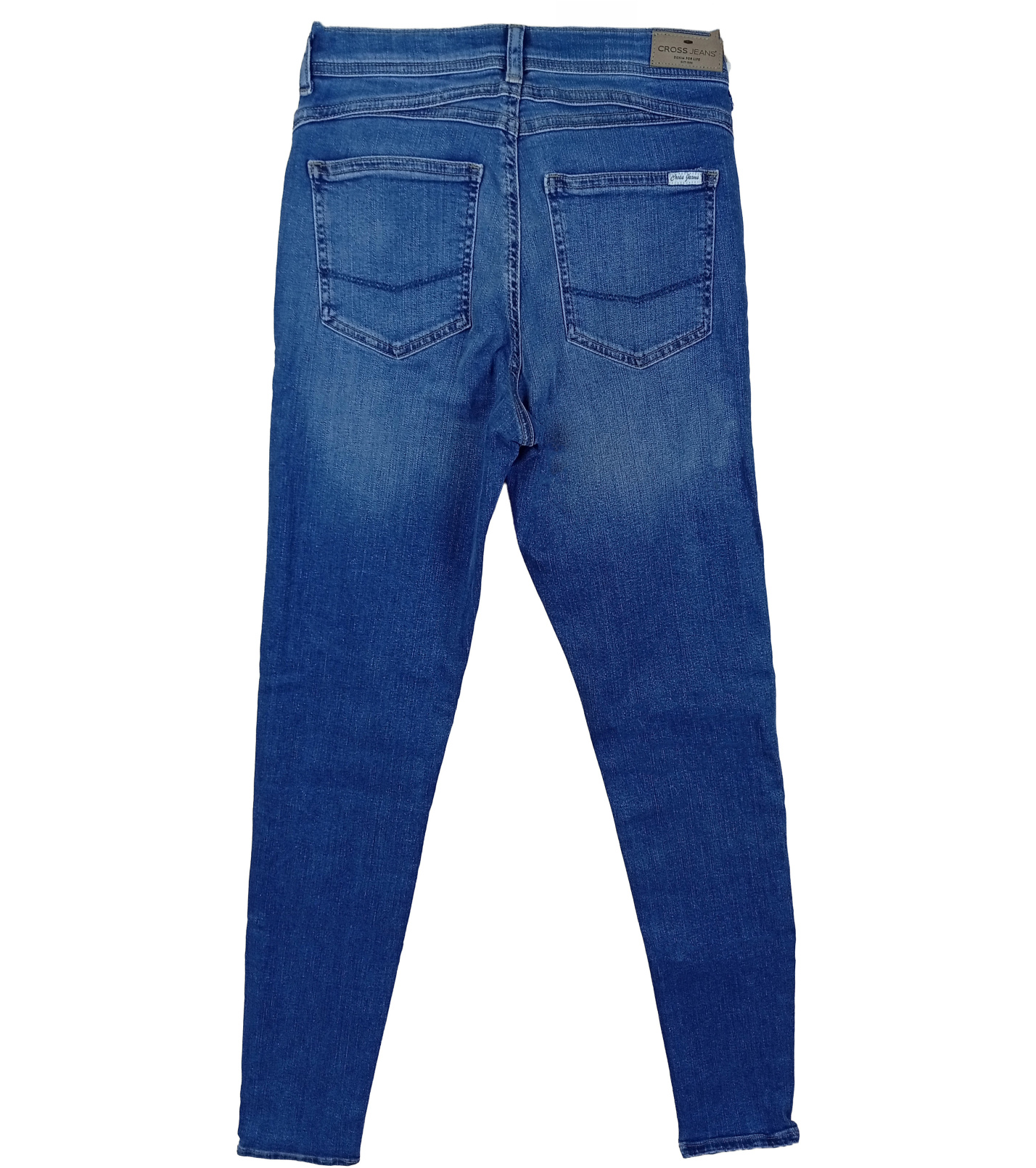 Damskie jeansy Cross w nowoczesnym, obcisłym fasonie idealnie dopasowują się do sylwetki, a dzięki dodatkowi elastanu zapewniają wygodę noszenia przez cały dzień. Dzięki wyższemu stanowi i klasycznemu, niebieskiemu odcieniowi z subtelnym przetarciem, doskonale podkreślają sylwetkę i pozwalają na różnorodne stylizacje – od casualowych stylizacji ze sneakersami po bardziej eleganckie zestawienia z koszulą lub szpilkami. Wytrzymały denim i precyzyjne szwy gwarantują długą żywotność nawet przy częstym noszeniu.