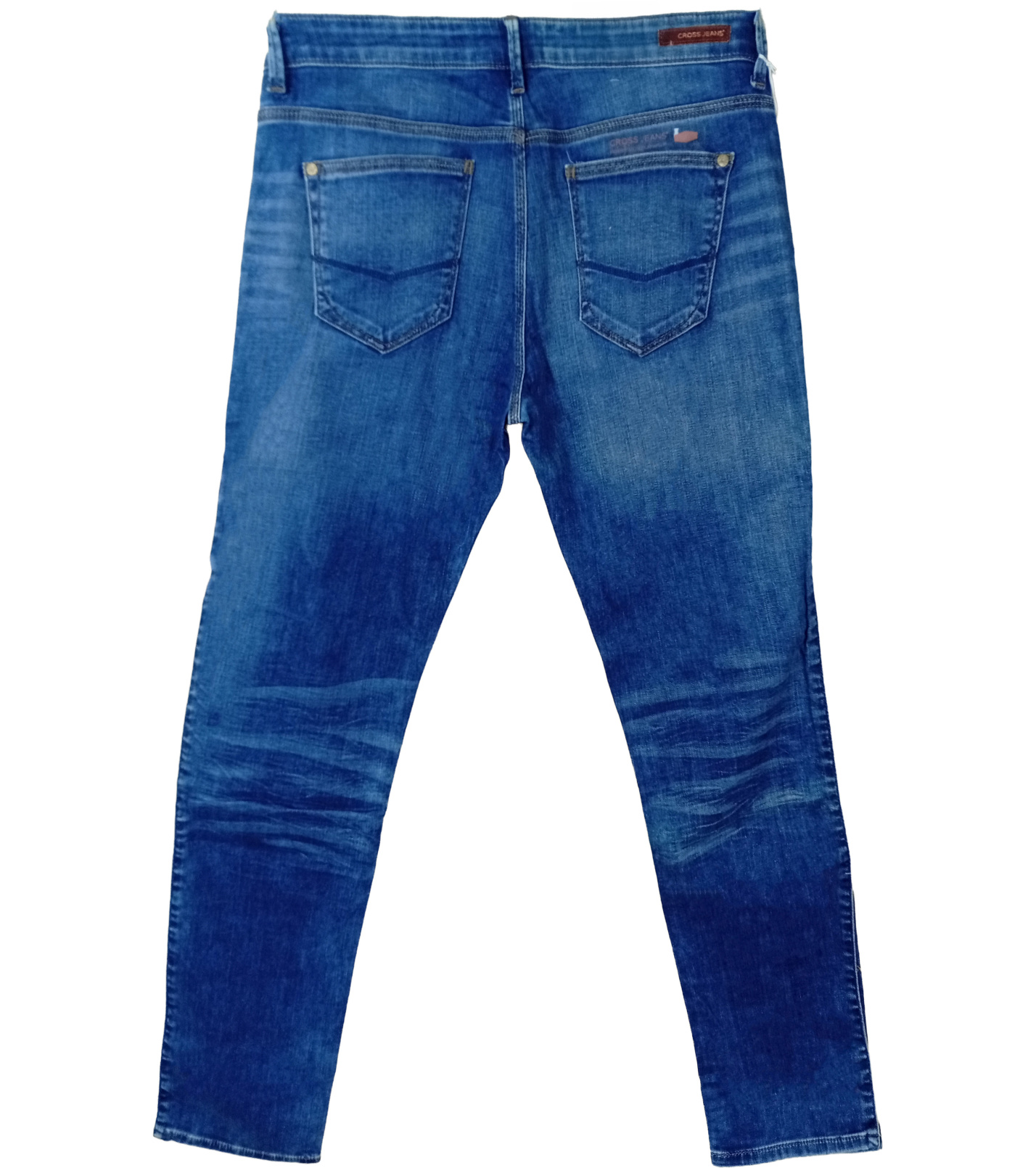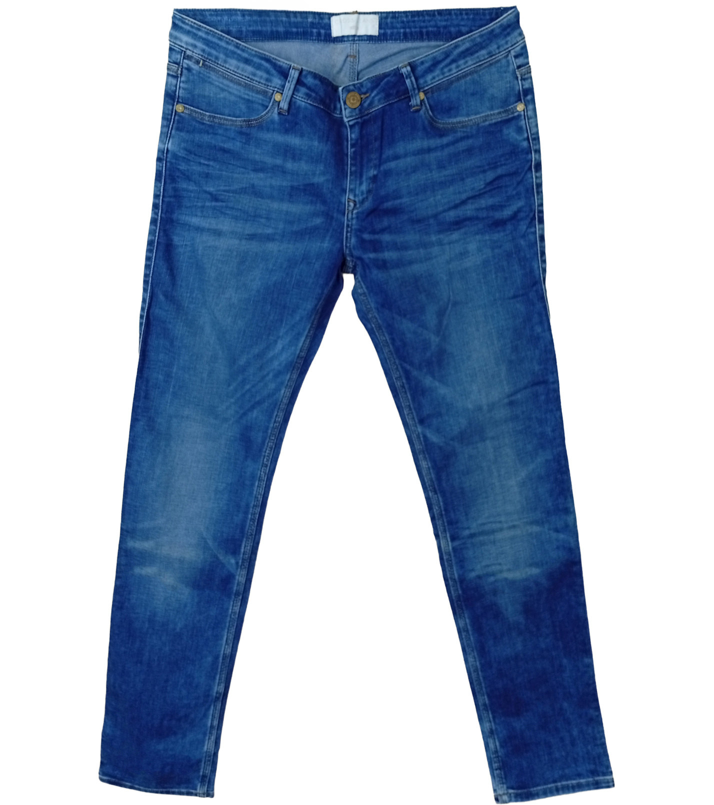 Eleganckie jeansy damskie, wykonane z wysokiej jakości denimu, który łączy elastyczność i wygodę dzięki dodatkowi elastanu. Mają wąską, dopasowaną nogawkę (skinny fit), średni stan i klasyczny niebieski odcień z subtelnym przetarciem, który nadaje im stylowy wygląd. Idealny wybór na co dzień, który podkreśli sylwetkę i z łatwością można go zestawić ze sneakersami lub szpilkami.