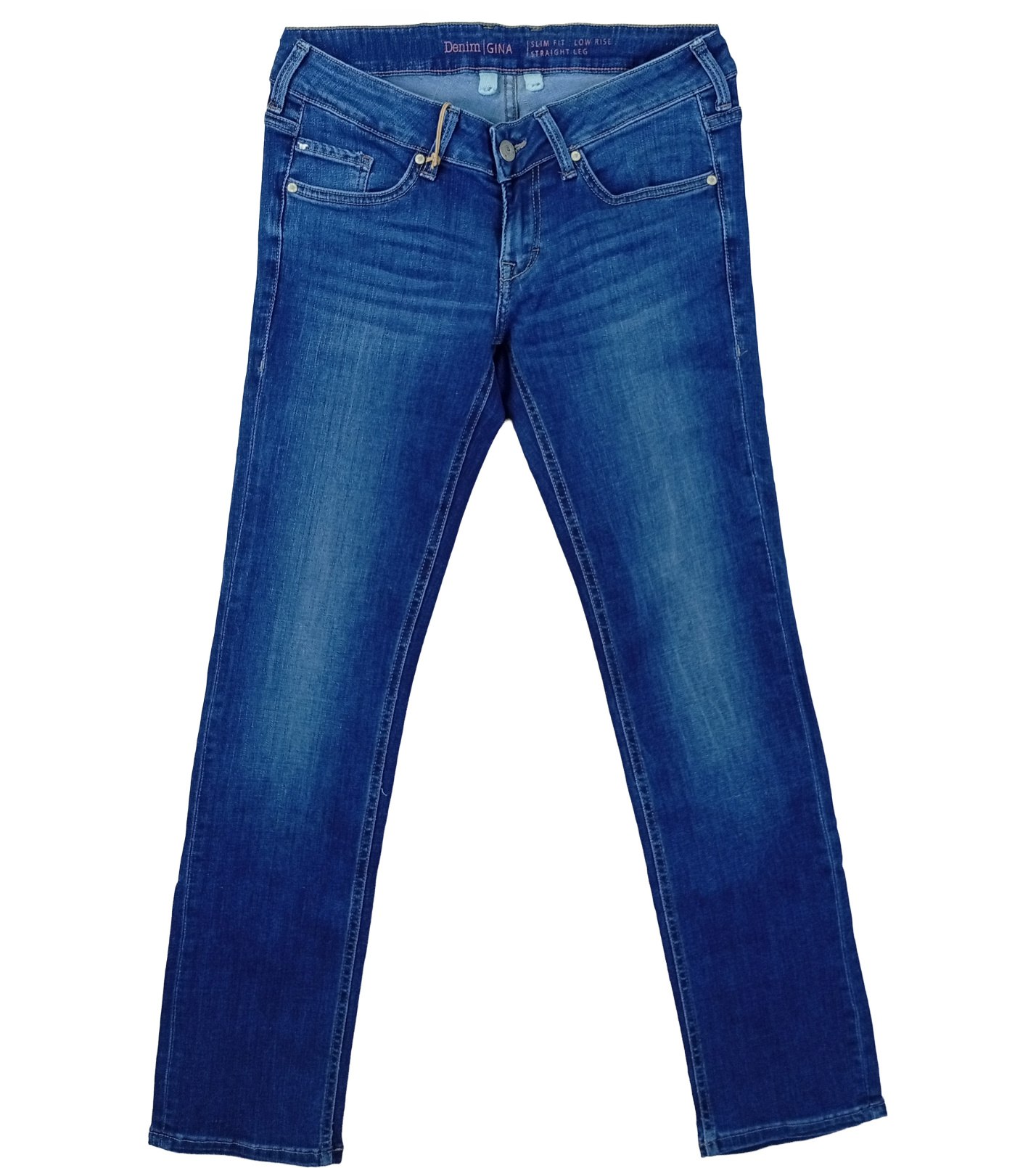Damskie jeansy Mustang z kolekcji Gina w popularnym kroju Slim Fit z niższym stanem i prostymi nogawkami. Niebieski denim z subtelnymi przeszyciami na udach prezentuje się nowocześnie i optycznie wydłuża nogi. Dzięki dodatkowi elastanu jeansy są wygodne w noszeniu i dobrze leżą. Idealny, uniwersalny model do codziennego noszenia z T-shirtem, swetrem i bluzką.