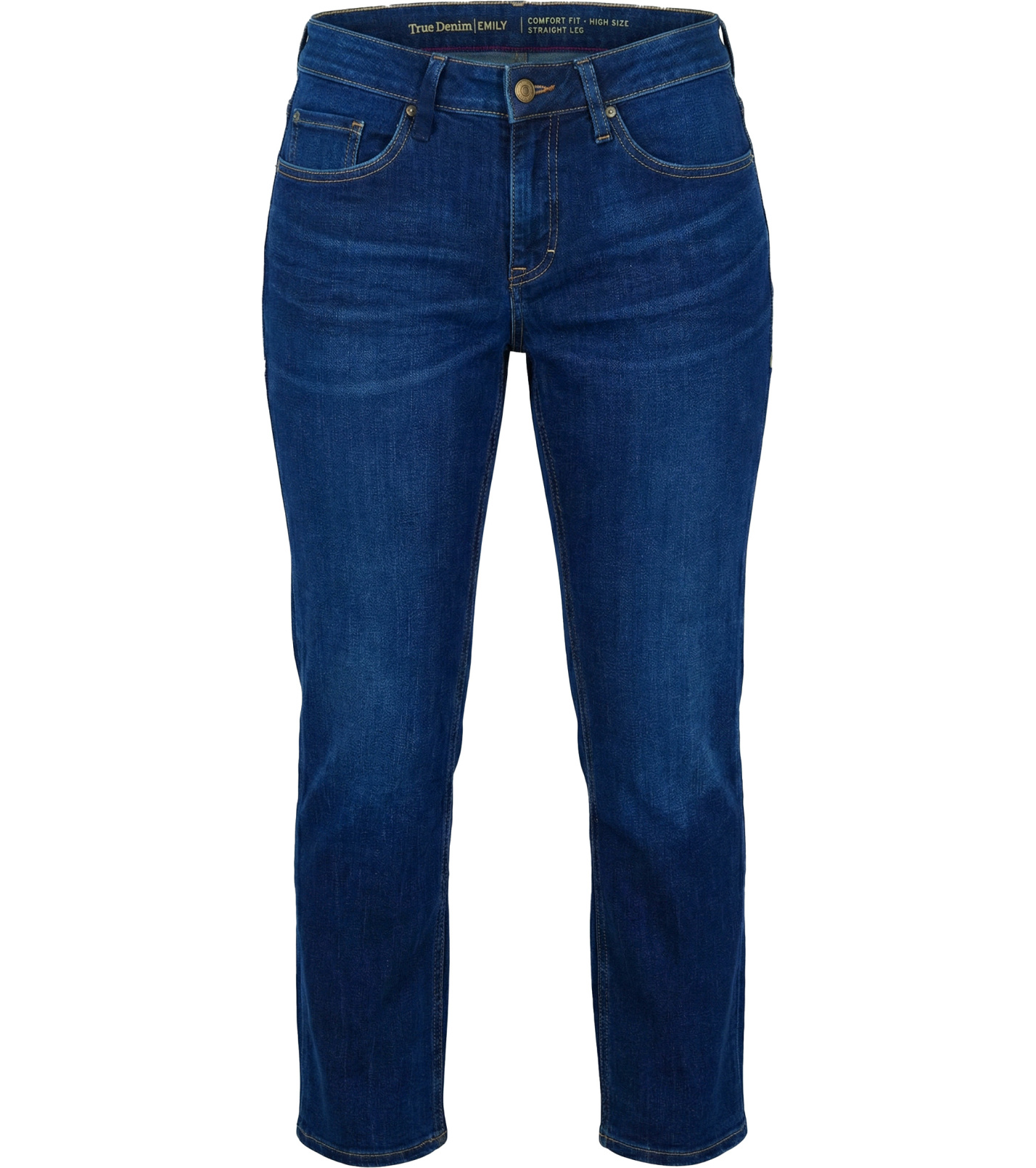 Damskie jeansy Mustang z kolekcji Emily w wygodnym kroju Comfort Fit z wyższym stanem i prostymi nogawkami. Model łączy klasyczny wygląd z wygodą dzięki wysokiej jakości jeansowi, który jest przyjemny w noszeniu i dobrze trzyma fason. Granatowy design jest uniwersalny i łatwo go zestawić zarówno z elegancką, jak i casualową stylizacją.
