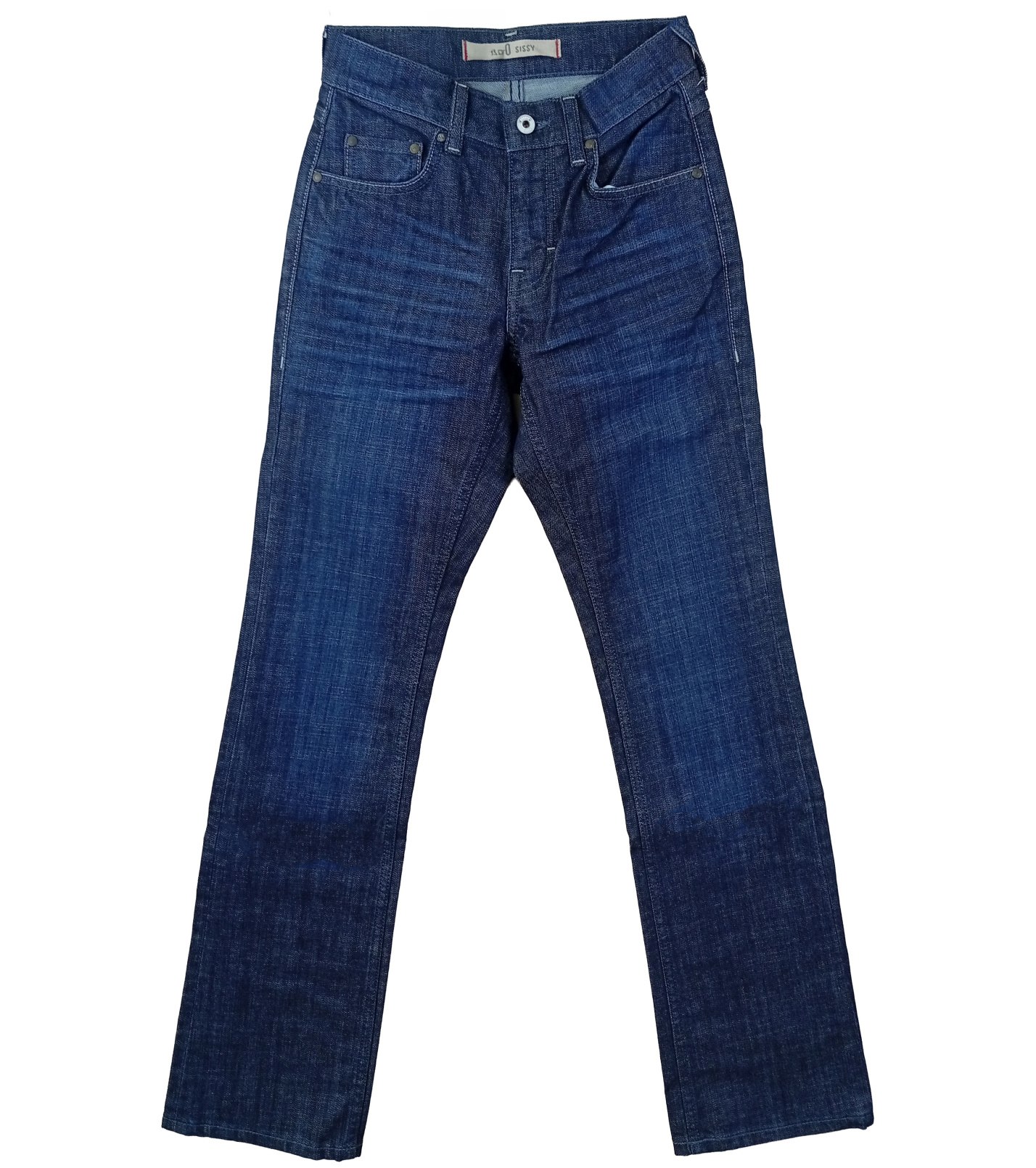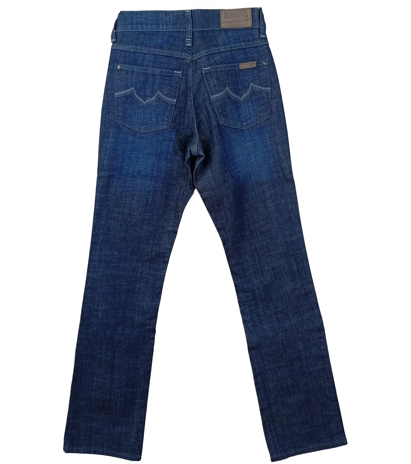 Damskie jeansy o klasycznym, prostym kroju wyróżniają się ciemnoniebieskim kolorem z subtelnym efektem sprania, który wygląda nowocześnie i ponadczasowo. Spodnie zapinane są na zamek i guzik, mają pięć praktycznych kieszeni i wygodny, podkreślający figurę krój. Idealnie nadają się do noszenia na co dzień, łatwo je zestawić z T-shirtem, bluzką i swetrem, a także pasują zarówno do sneakersów, jak i szpilek.