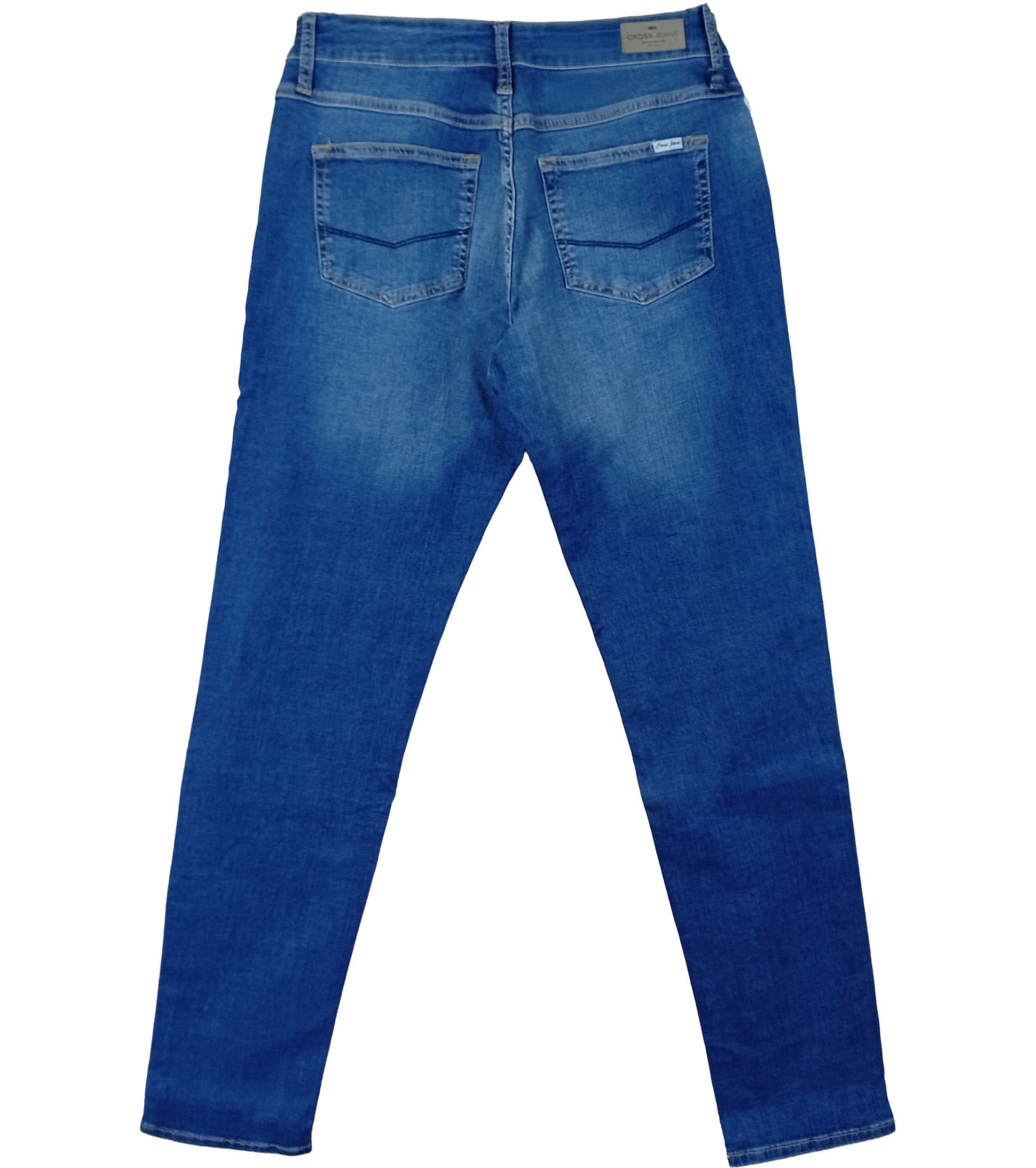 Stylowe damskie jeansy o dopasowanym kroju, który idealnie dopasowuje się do sylwetki i podkreśla kobiece kształty. Przyjemny i elastyczny materiał zapewnia wygodę noszenia przez cały dzień. Klasyczne zapięcie na zamek i guzik, dwie kieszenie z przodu i dwie z tyłu. Idealne do trampek i szpilek – idealne na co dzień.