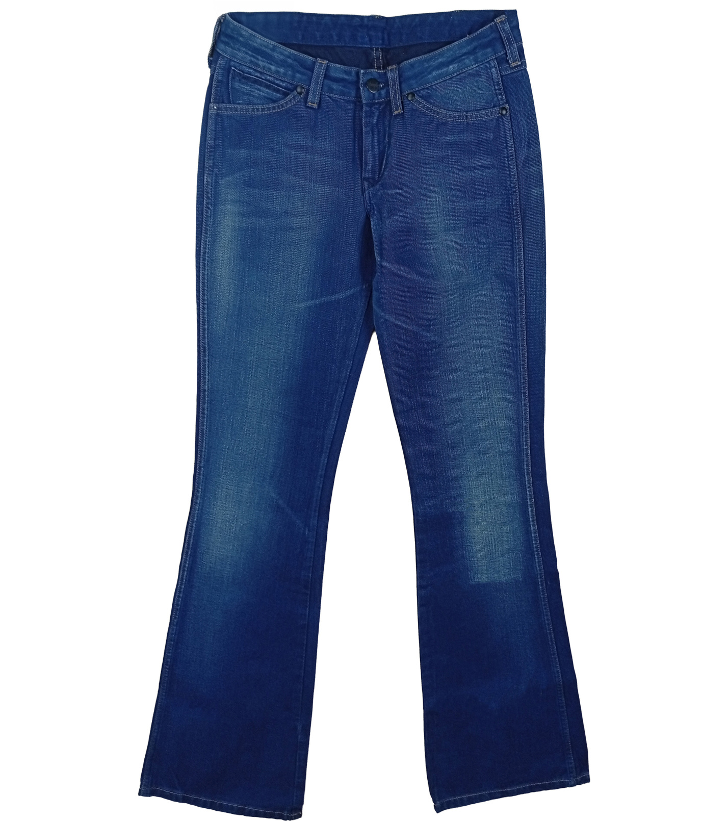 Damskie jeansy Wrangler z rozszerzanymi nogawkami to uniwersalny element garderoby. Niebieski denim z delikatnym przetarciem na udach i plecach tworzy nowoczesny look, a klasyczne przeszycia w kształcie litery „W” na kieszeniach i skórzana metka Wrangler dodają autentycznego charakteru marki.