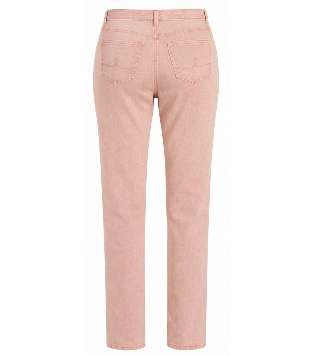 Różowe jeansy o nowoczesnym, lekko zwężanym kroju, który prezentuje się świeżo i kobieco. Subtelne przeszycia nadają modelowi miękki, naturalny wygląd i podkreślają kolor. Wysokiej jakości denim zapewnia komfort noszenia i dobre dopasowanie. Klasyczne zapięcie na guzik i zamek błyskawiczny, pięć kieszeni i subtelne detale podkreślają ponadczasowy charakter. Idealny wybór do wiosenno-letnich, casualowych stylizacji.
