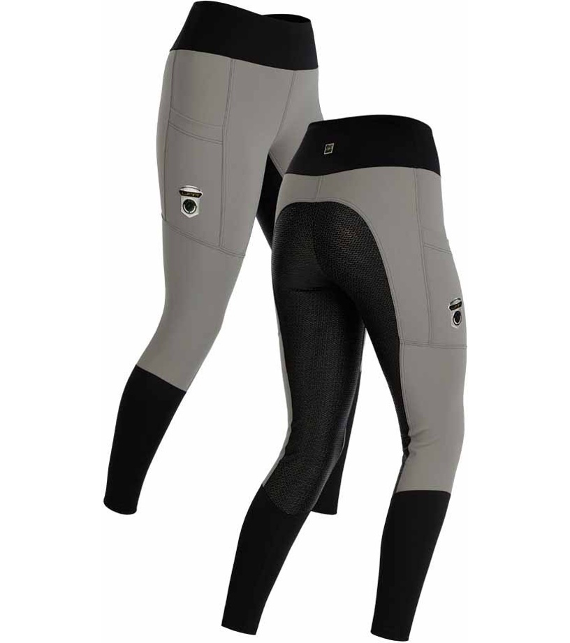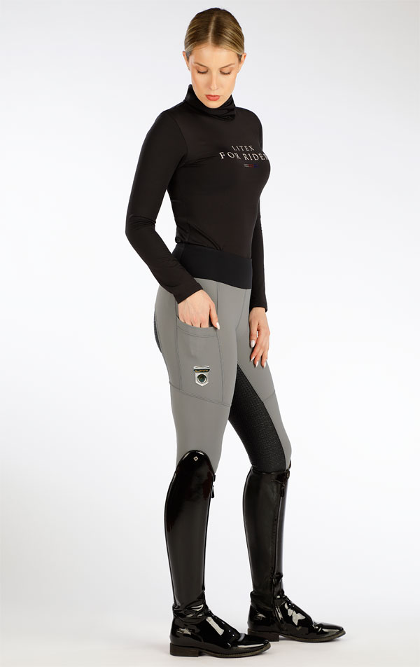 Leginsy jeździeckie z silikonowymi uchwytami na całym siedzeniu. Elastyczny i szeroki ściągacz w pasie. Praktyczne kieszenie na nogawkach. Wysokiej jakości elastyczny materiał gwarantuje wysoki komfort i wygodę przez cały okres noszenia. Stylowe logo na prawej kieszeni.