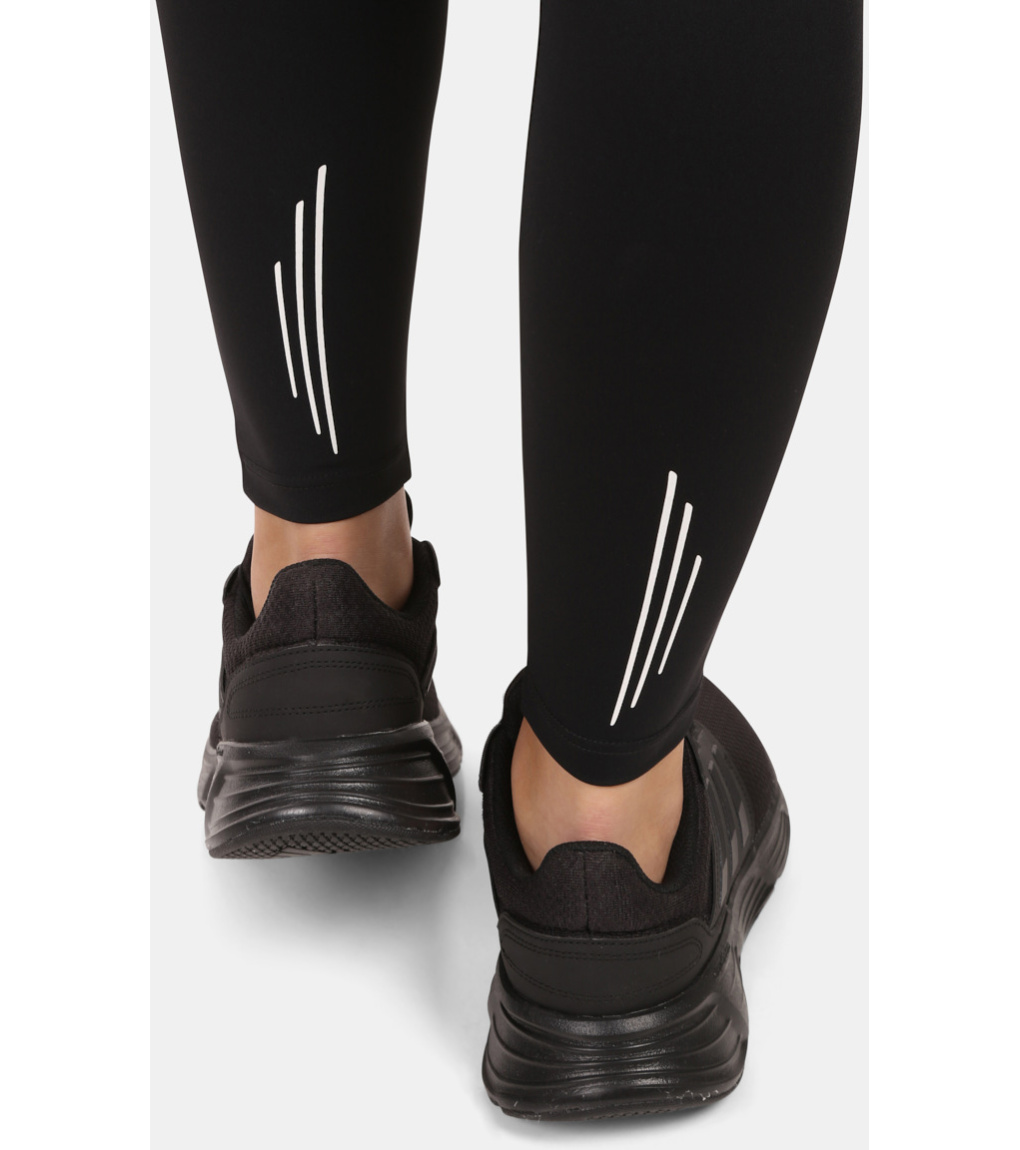 Elementy odblaskowe poprawiające widoczność sportowca dla bezpiecznego treningu nawet w złych warunkach oświetleniowych.