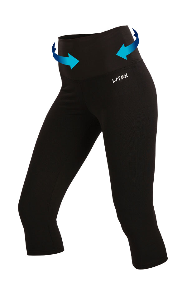 Legginsy damskie o długości 3/4. Szeroki pasek z materiału ściągającego.