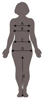| A | Obwód w biuście | 84 - 87 | 88 - 91 | 92 - 95 | 96 - 99 | 100 - 103 | 104 - 107 | 108 - 111 | 112 - 115 | 116 - 119 |