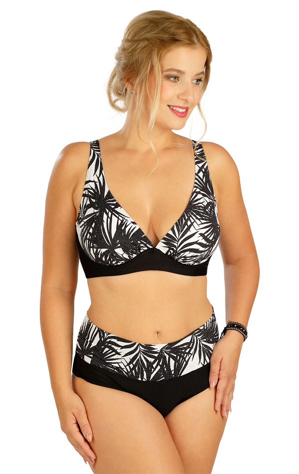 Damski biustonosz kąpielowy z fiszbinami. Wyjmowane wzmocnienie. Podszyty. Zapięcie na plecach. Szerokie regulowane ramiączka. Wzmocniony obwód.