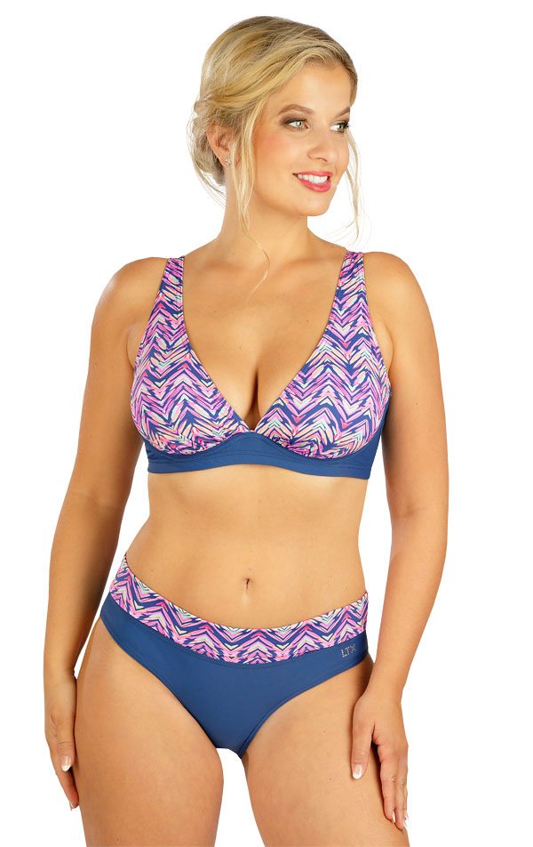 Damski biustonosz kąpielowy z fiszbinami. Wyjmowane wzmocnienie. Podszyty. Zapięcie z tyłu. Szerokie regulowane ramiączka. Obwód wzmocniony.