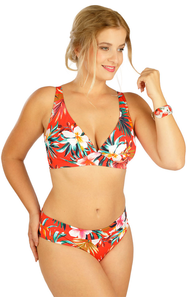 Damskie majtki kąpielowe średniej wysokości. W talii wszyty pasek.