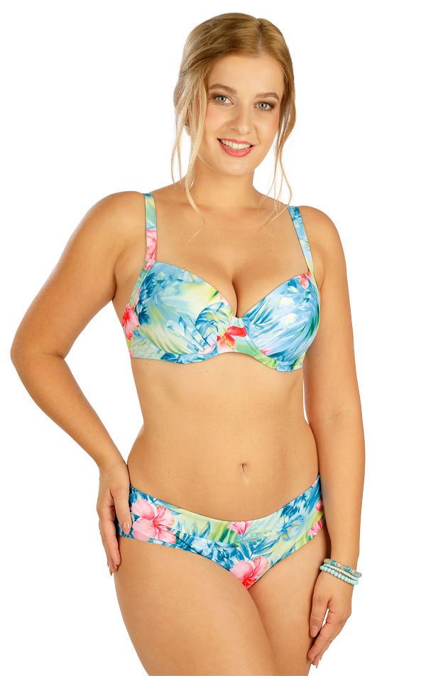 Damskie majtki kąpielowe średniej wysokości. W talii wszyty pasek.