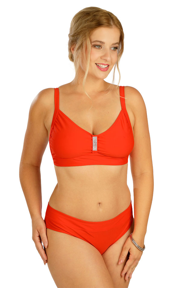 Damskie majtki kąpielowe średniej wysokości. W talii wszyty pasek.