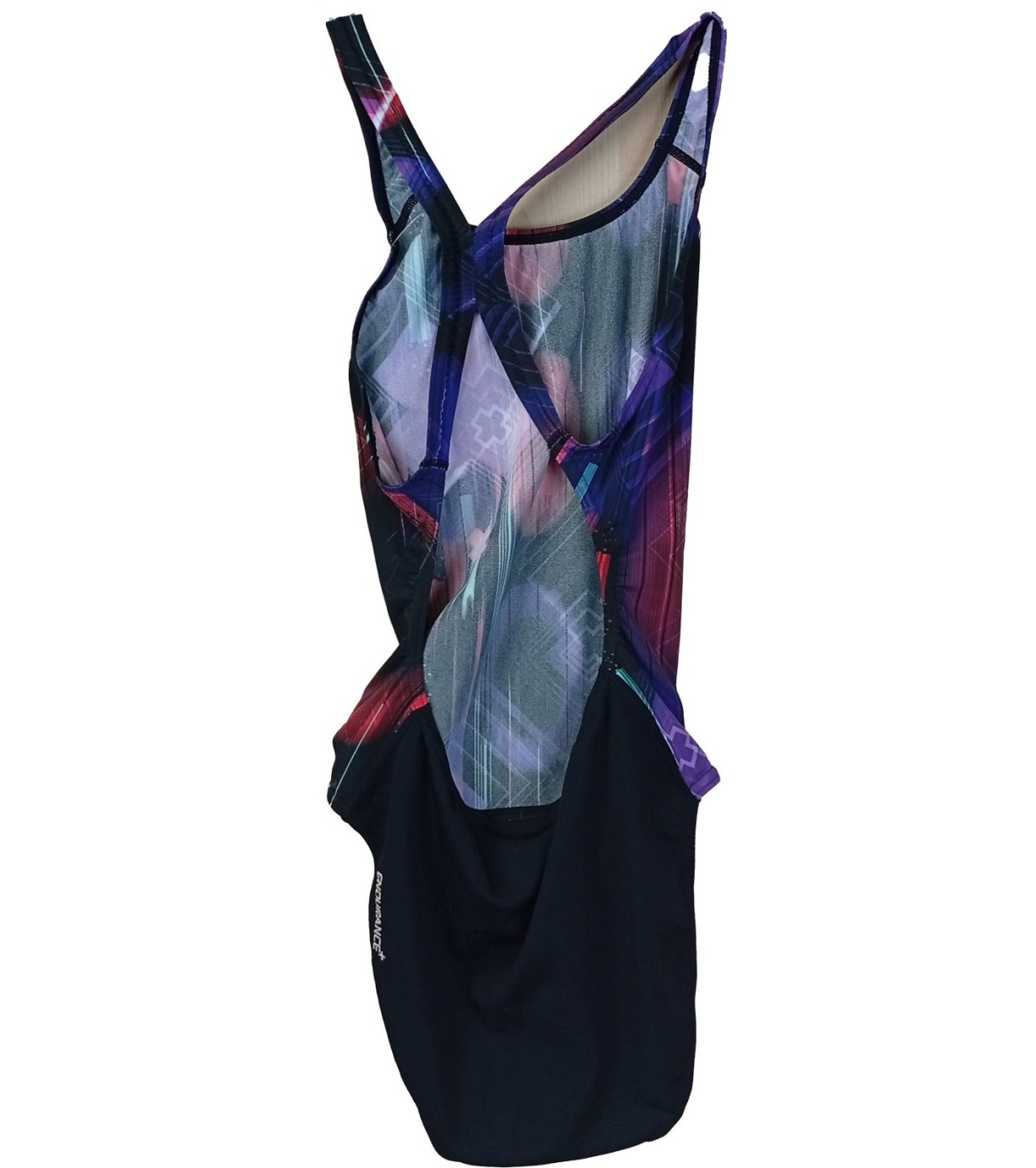 Sportowy, jednoczęściowy kostium kąpielowy dla kobiet z nowoczesnym, abstrakcyjnym wzorem w połączeniu ciemnych i wyrazistych kolorów. Wąskie ramiączka na krzyż zapewniają dobre wsparcie i swobodę ruchów, dzięki czemu idealnie nadają się do pływania i treningów. Ergonomiczny krój dopasowuje się do sylwetki i zapewnia komfort noszenia. Wytrzymały materiał nadaje się do częstego użytkowania na basenie, szybko schnie i długo zachowuje swój kształt i kolor. Doskonały wybór dla aktywnych pływaczek, które cenią sobie funkcjonalność i styl.