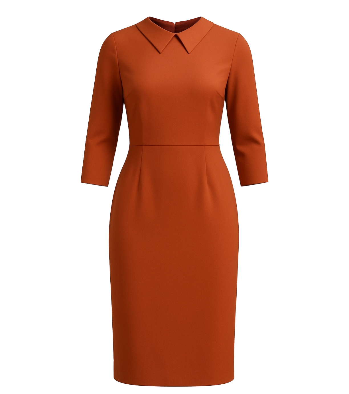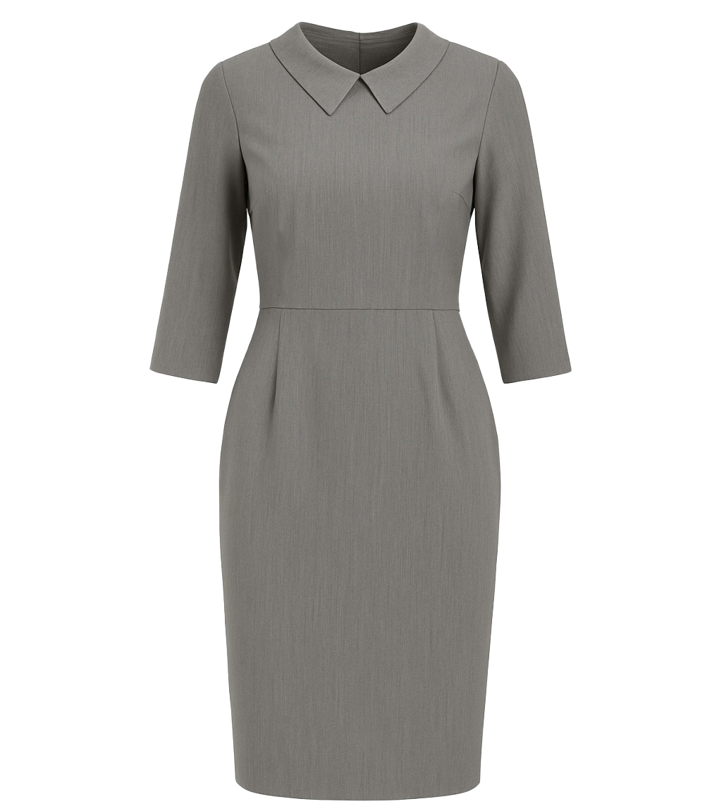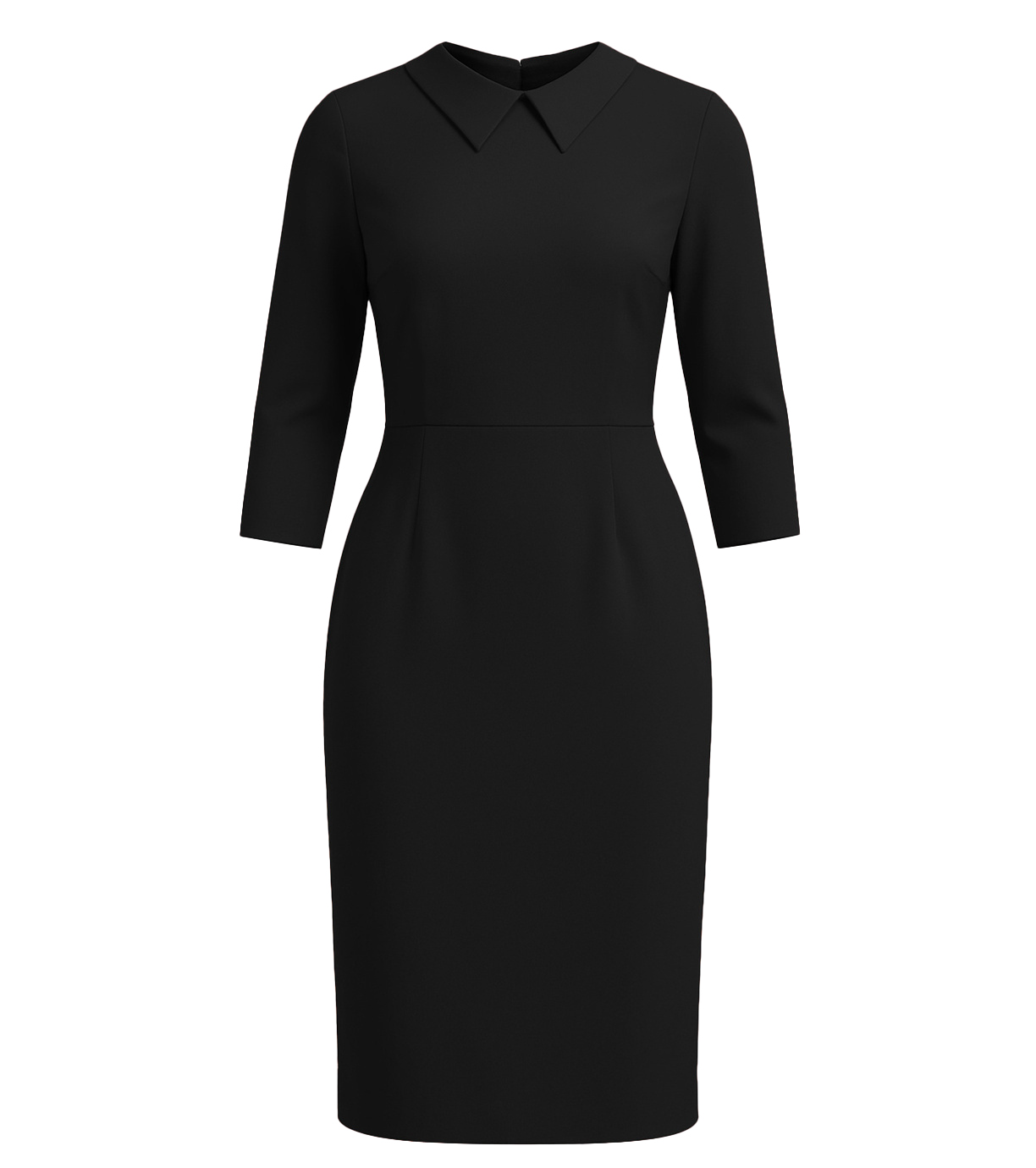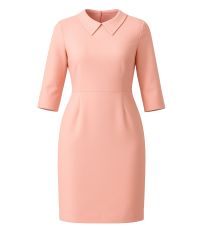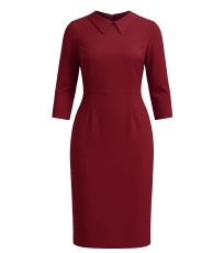 Damska sukienka ołówkowa z rękawem 3/4 nadaje się na wszelkiego rodzaju imprezy towarzyskie. Długość sukienki do kolan. Kołnierzyk dodaje sukience elegancji. Zapięcie na suwak z tyłu.