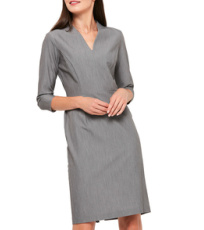 Damska sukienka ołówkowa z rękawami 3/4 to bardzo prosty fason z dekoltem w literę V. Rozcięcie z tyłu, zakładki z przodu i z tyłu. Zapięcie na zamek z tyłu. Sukienka nie ma podszewki.