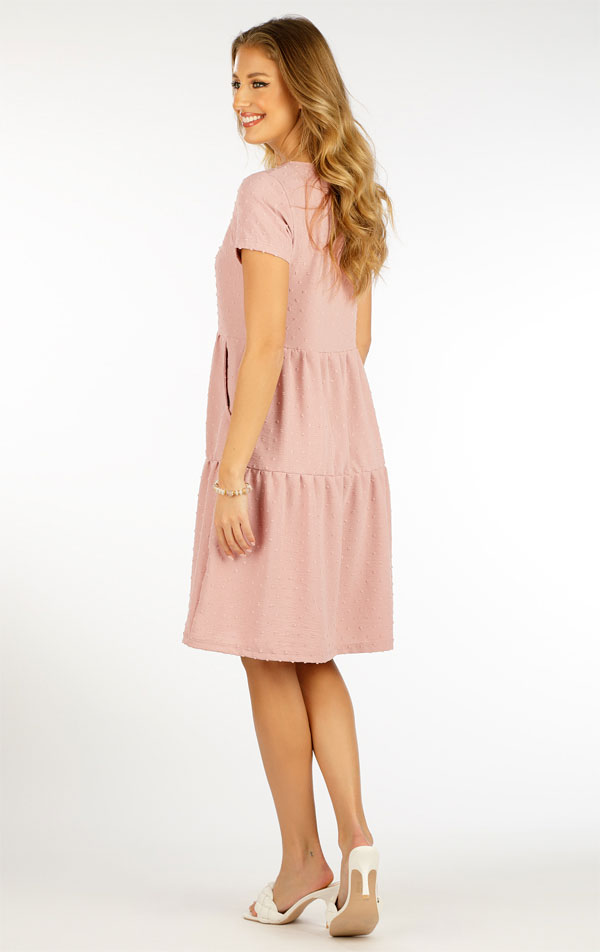 Sukienka damska z krótkimi rękawami. Luźniejsza sukienka damska z dekoltem w serek, kieszeniami i falbanami. Tkany, lekki materiał gwarantuje oryginalność i maksymalny komfort noszenia. Z pewnością docenisz odporność na zagniecenia i łatwość konserwacji. Bardzo pomysłowy element, który stylowo odświeży Twoją letnią garderobę. Długość sukienki ok. 92 cm.
