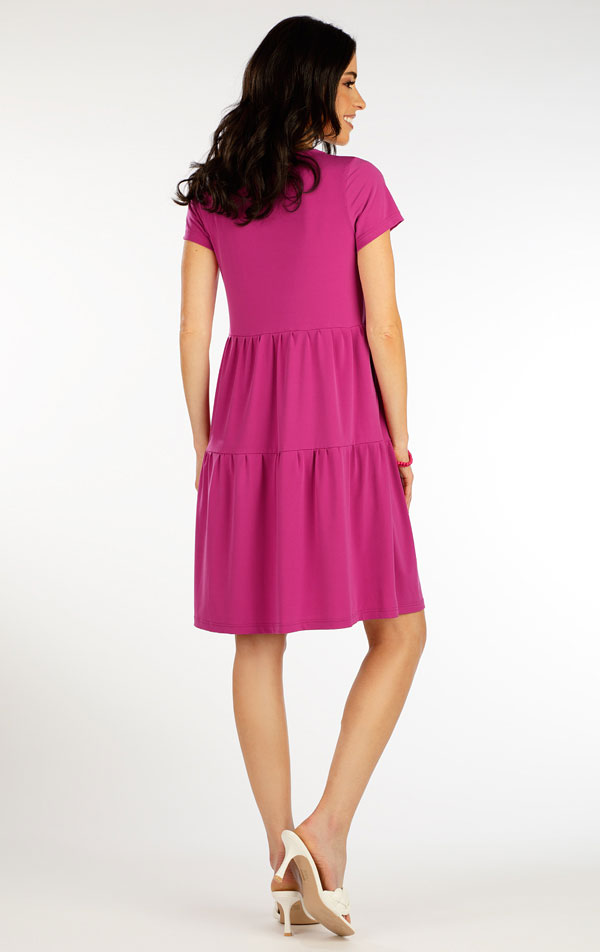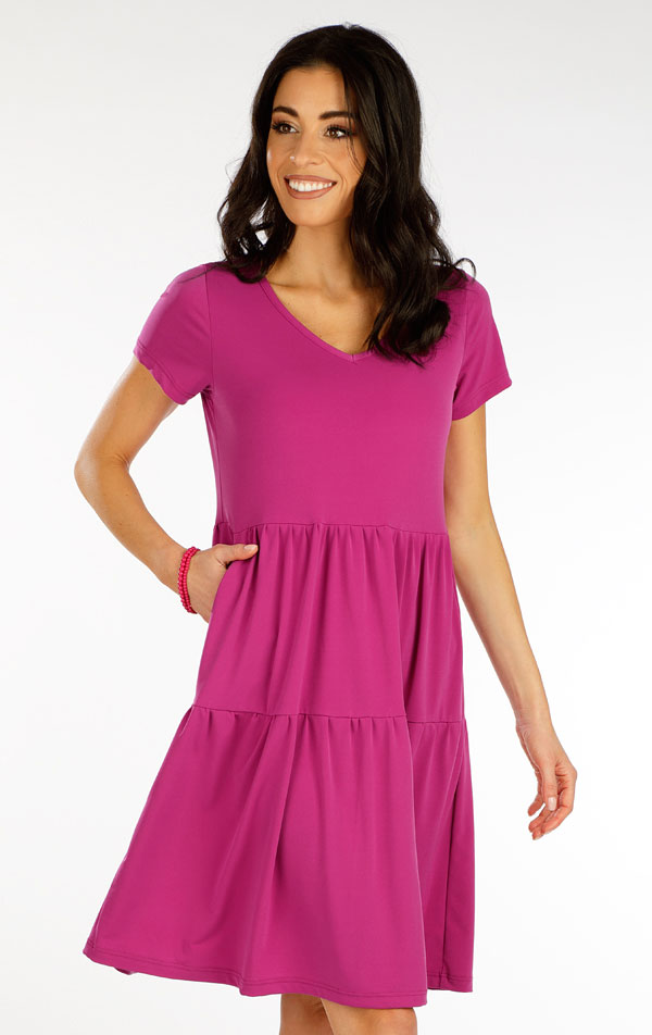 Luźniejsza sukienka damska z dekoltem w serek, kieszeniami i falbanami. Bardzo przyjemny w dotyku i elastyczny materiał, który się nie gniecie, zapewni Ci maksymalny komfort noszenia. Długość sukienki ok. 92 cm.
