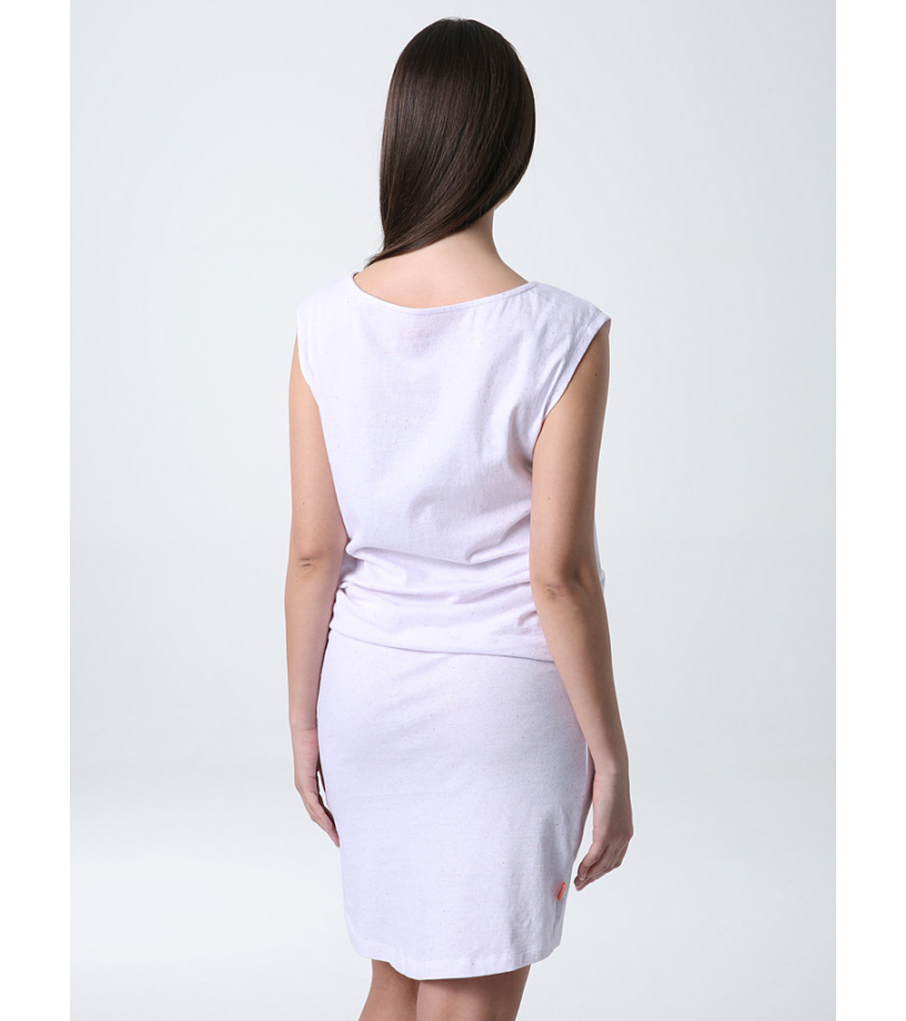Letnia sukienka damska BUNDILA bez rękawów ma klasyczny krój z dekoltem w łódkę. Talia jest elastyczna i może być elegancko marszczona. Dół jest lekko wydłużony z tyłu. Uszyta jest z bawełny (98%) i elastanu (2%) w lekkiej letniej gramaturze 150 g/m2. Bardziej elastyczna sukienka ładnie układa się na ciele i jest bardzo przyjemna w dotyku. Wyróżnia je wielokolorowa nić, która tworzy oryginalny efekt 3D. Będziesz cieszyć się latem w tej przewiewnej, krótkiej sukience bez kieszeni. Prać w 30°C ze zmiękczaczem do tkanin.
