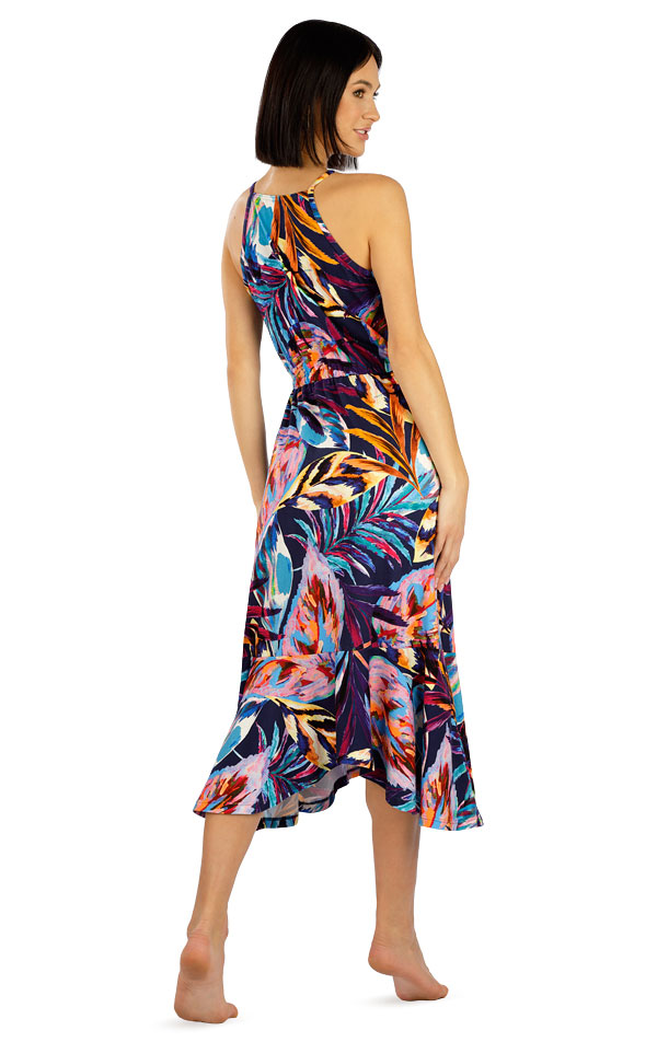 Efektowny krój długiej sukni. Sznurek w talii i odsłonięte ramiona zapewniają doskonały wygląd. Marszczony dolny brzeg. Dzianina bawełniana z domieszką elastanu gwarantuje przyjemne uczucie podczas noszenia. Pomysłowy element, który stylowo odświeży Twoją letnią garderobę. Długość sukienki to ok. 125 cm.
