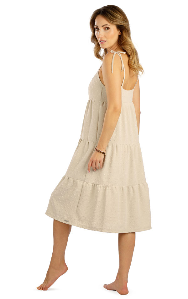Sukienka damska na ramiączkach. Efektowna romantyczna sukienka o luźnym kroju z falbanami i ramiączkami do wiązania. Tkany lekki materiał gwarantuje oryginalność i maksymalny komfort noszenia. Pomysłowy element, który stylowo odświeży Twoją letnią garderobę. Długość sukienki to ok. 97 cm.