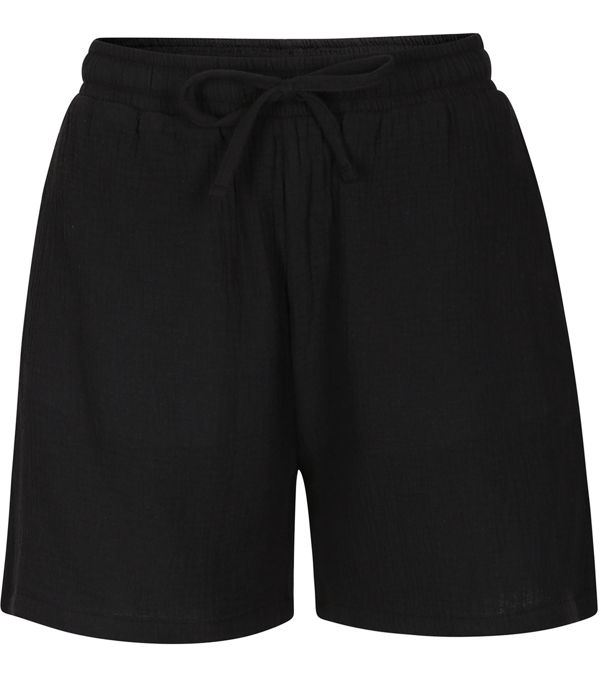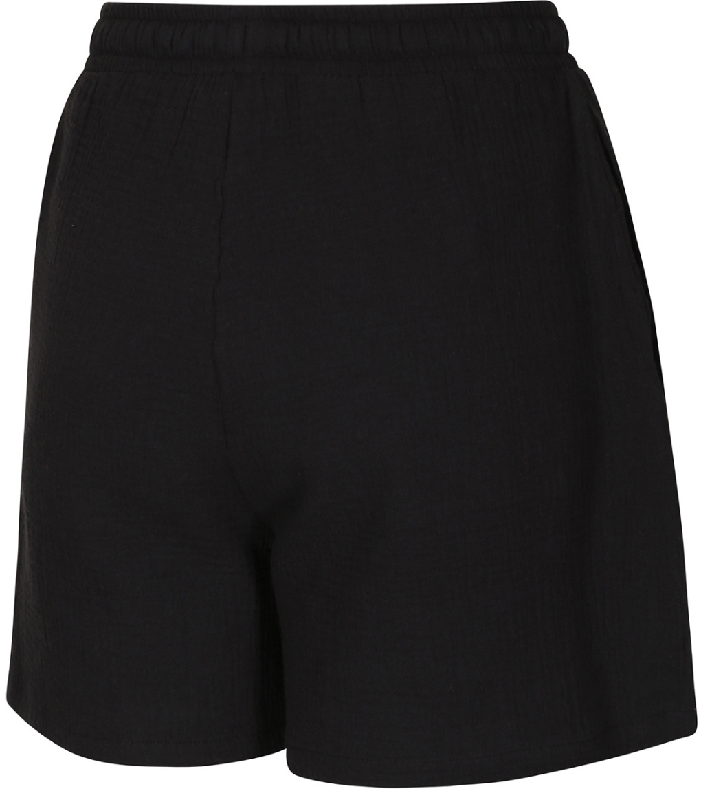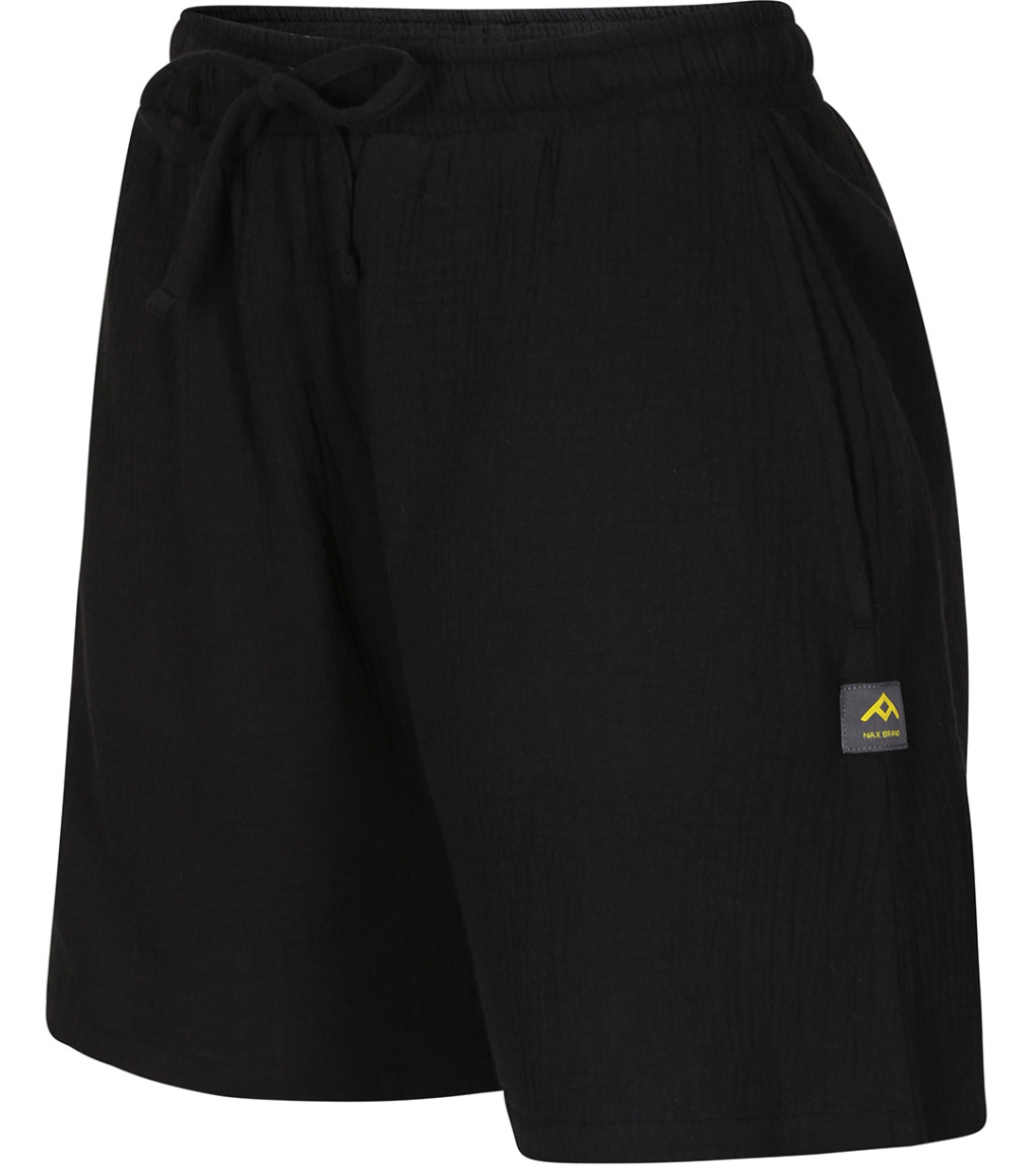 Dzięki luźnemu krojowi i ściągaczowi w pasie ze sznurkiem idealnie dopasowują się do ciała i nie ograniczają ruchów. Dwie praktyczne kieszenie służą do przechowywania drobiazgów, a subtelna naszywka wszyta w boczny szew nadaje spodenkom subtelny detal.