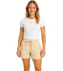 Lekkie i wygodne damskie spodenki wykonane w 100% z bawełny (FINE COTTON) są idealnym wyborem na zajęcia rekreacyjne, spacery i podróże. Materiał o odpowiedniej strukturze jest przyjemny w dotyku, wysoce oddychający i odpowiedni na ciepłe letnie dni.