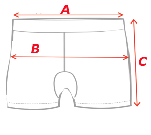 | C  | długość spodenek  | 25  | 26  | 27  | 28  | 29  | 30  | 30  |