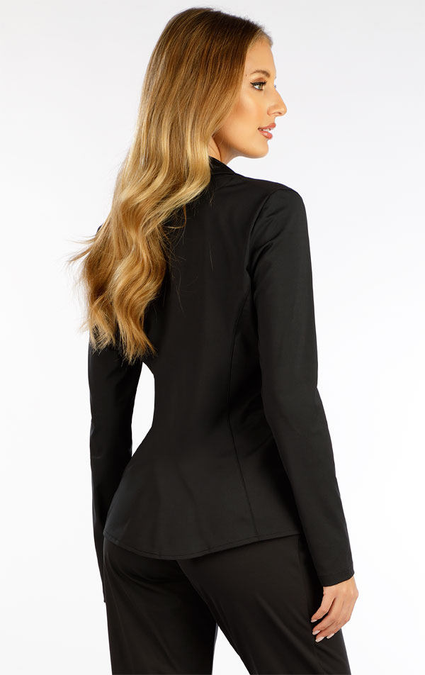 Żakiet damski. Ponadczasowy model w eleganckim stylu z funkcjonalnymi kieszeniami wpuszczanymi i dopasowanym kołnierzem. Zapięcie na dwa guziki. Materiał jest lekko rozciągliwy, elastyczny, nie gniecie się i szybko schnie. Bardzo praktyczny element, który można łączyć.