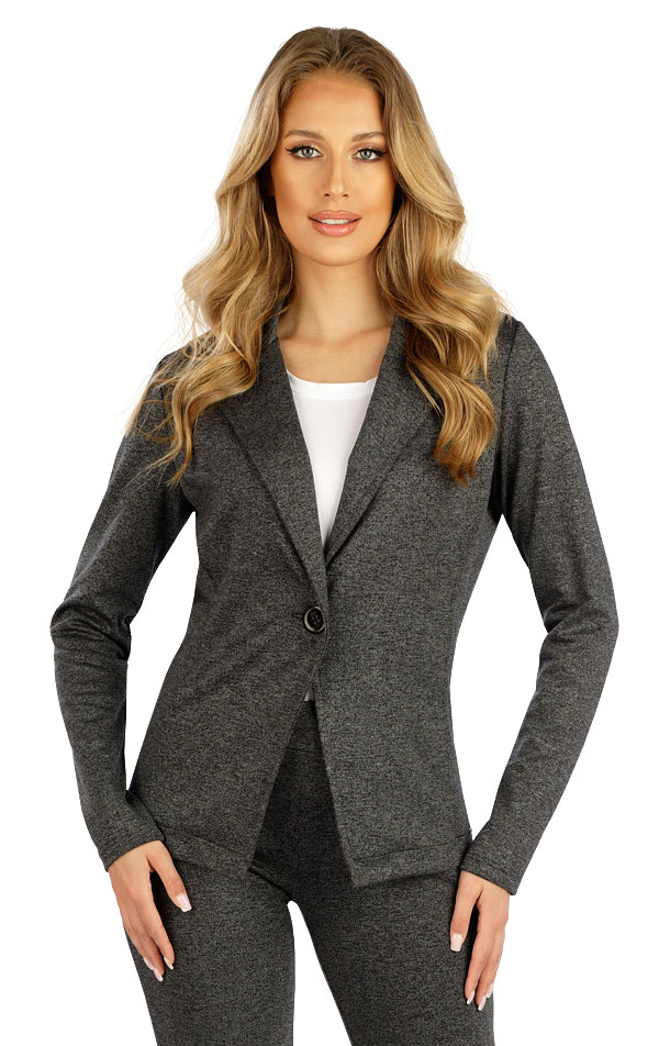 Żakiet damski. Klasyczny fason z kołnierzykiem i zapięciem na jeden guzik. Bez kieszeni. Wysokiej jakości dzianina imitująca czarny dżins. Bardzo dobrze się rozciąga i nie gniecie. Żakiet jest niezwykle wygodny dzięki całościowemu wykonaniu. Doskonały do łączenia element, który ozdobi Twój strój.