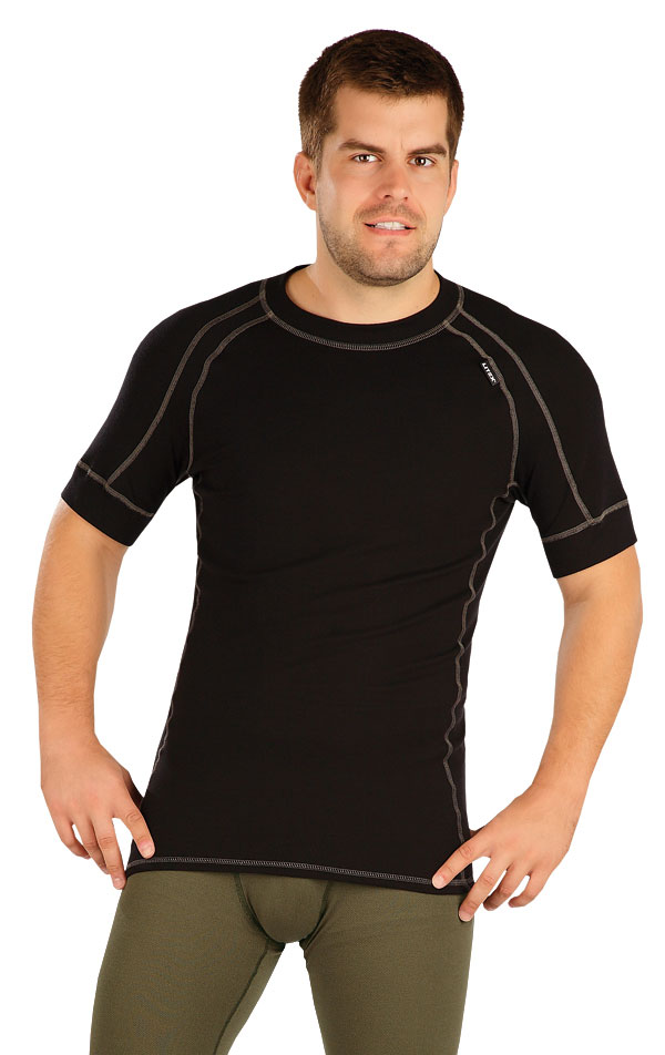 Męska funkcyjna koszulka termoaktywna. Krótki rękaw. Okrągły dekolt. Przedłużany tył. Płaskie szwy.