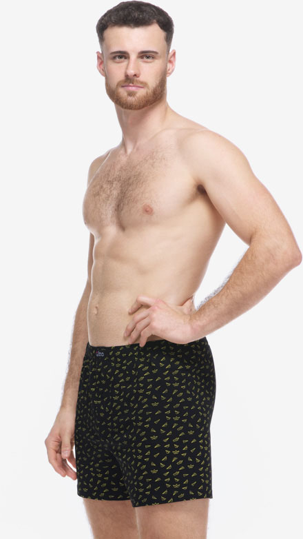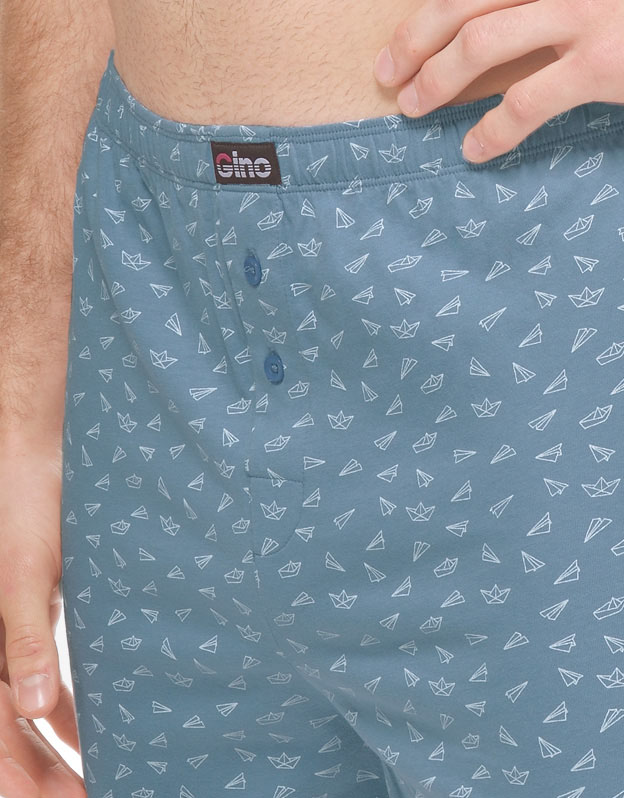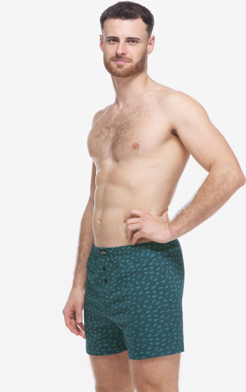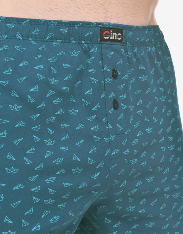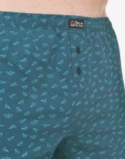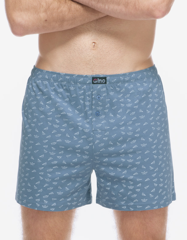 Luźne bokserki wykonane w 100% z bawełny przypadną do gustu każdemu, kto ceni klasyczny, wygodny krój i naturalny materiał. Idealnie dopasowana gumka w pasie i rozcięcie zapinane na dwa guziki to oczywistość. Model zdobi wzór na całej powierzchni. W pasie naszywka z logo Gino, idealne do noszenia na co dzień.