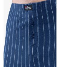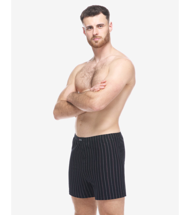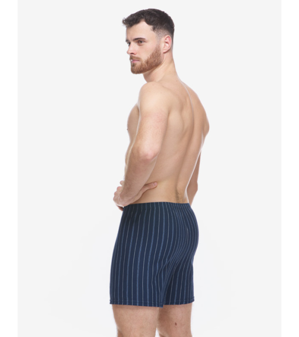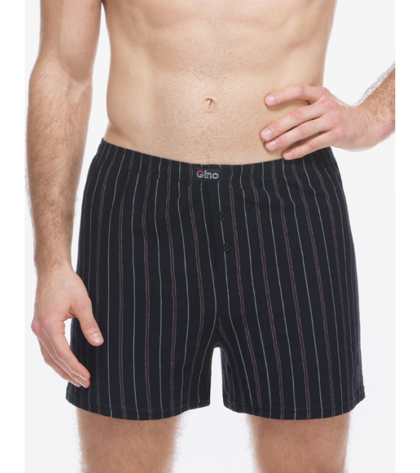 Luźne spodenki wykonane w 100% z bawełny to idealny wybór dla tych, którzy lubią klasyczny, wygodny krój luźnych szortów i naturalne materiały. Model ten ma wzór w delikatne paski i naszywkę z logo Gino w talii. Dobrze dopasowana elastyczna talia i zapięcie na dwa guziki to oczywistość.