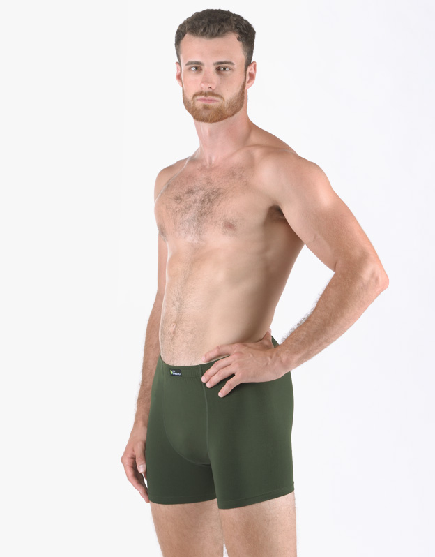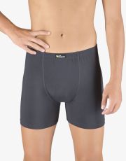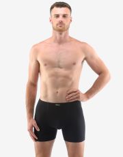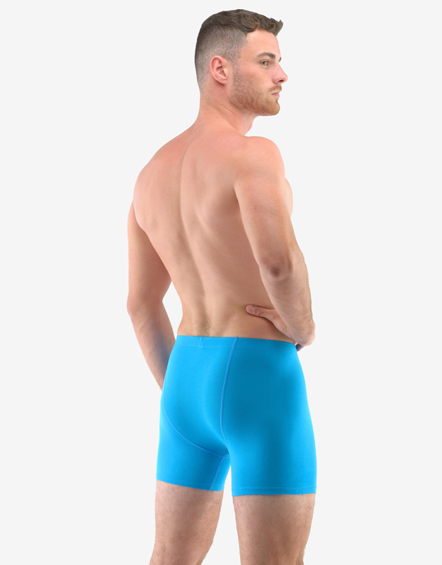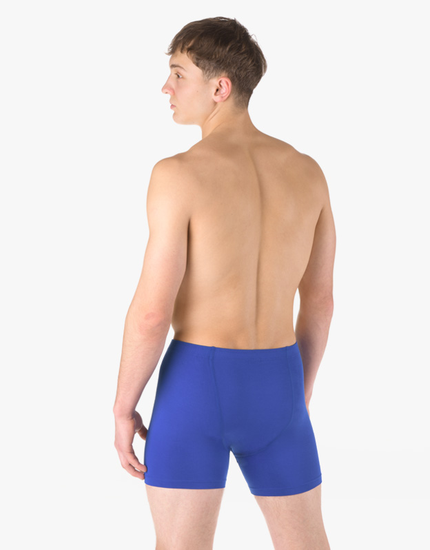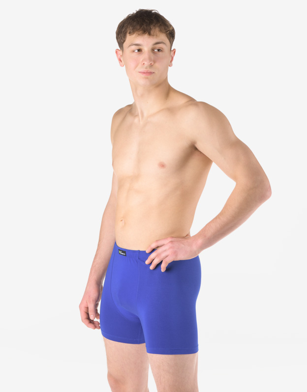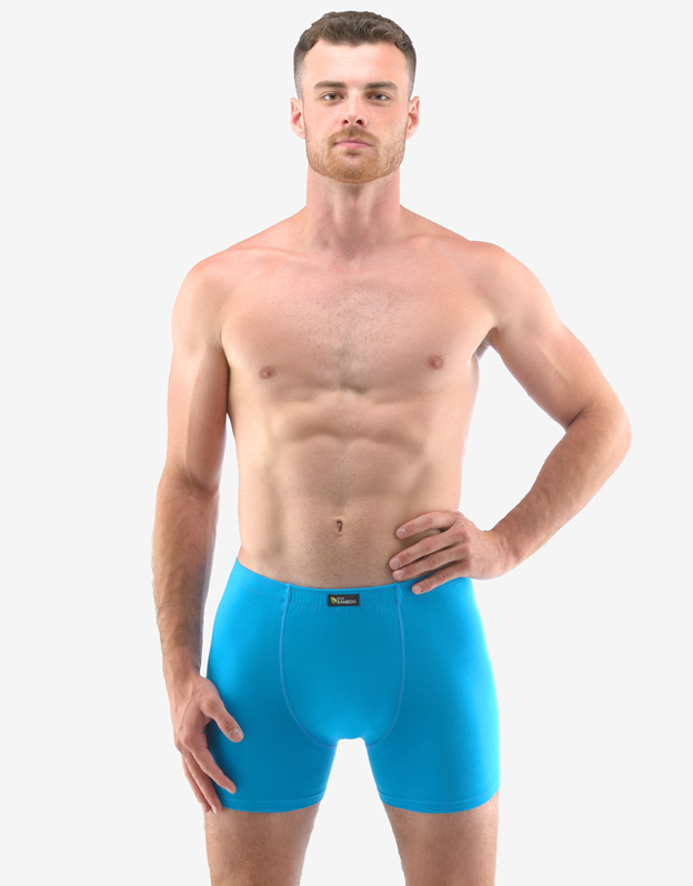 Męskie bokserki szyte z włókna bambusowego z dłuższymi nogawkami staną się Twoją ulubioną bielizną dzięki poczuciu komfortu, jakie Ci dają. Funkcjonalność bambusowej dzianiny docenisz zarówno latem, jak i zimą. Do wyboru są dwa warianty kolorystyczne - klasyczna czerń lub ulubiony niebieski.