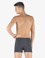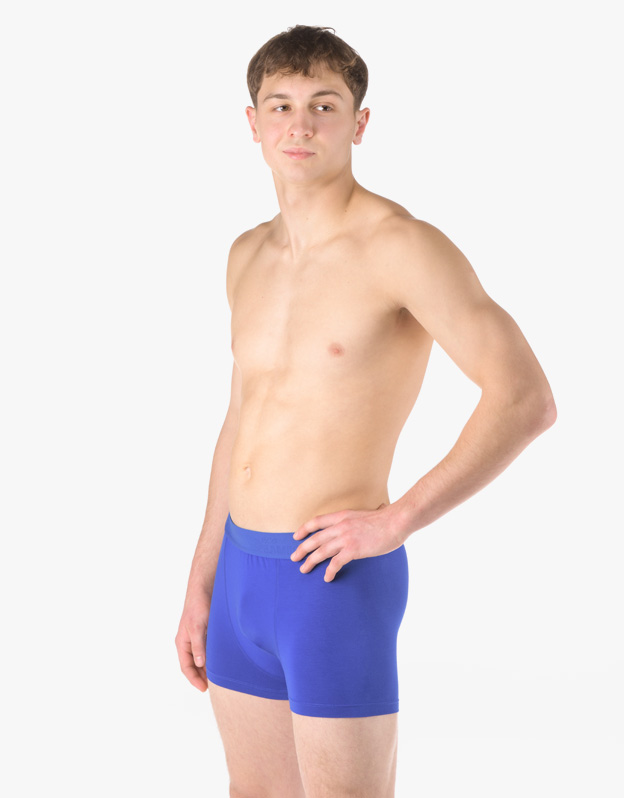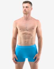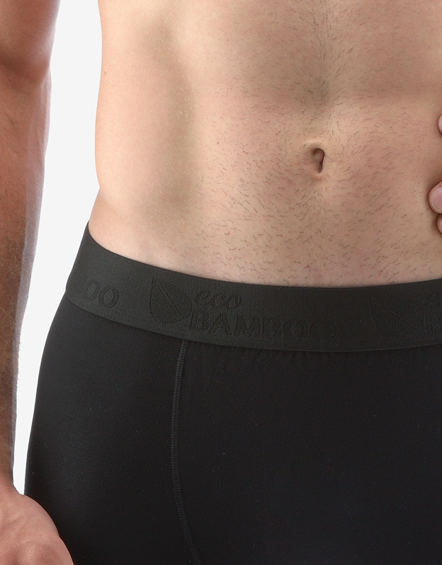 Męskie bokserki szyte z włókna bambusowego z wszytą gumą oraz krótszymi nogawkami to bielizna, której nie powinno zabraknąć żadnemu miłośnikowi wygody i naturalnych materiałów. Funkcjonalność bambusowej dzianiny docenisz zarówno latem, jak i zimą. Wszyta guma z logo EcoBamboo idealnie dopasowuje się do kształtu ciała i nigdzie nie uciska. Do wyboru są dwa warianty kolorystyczne - klasyczna czerń lub ulubiony niebieski.