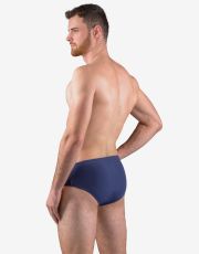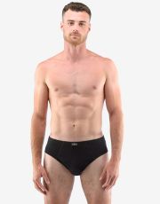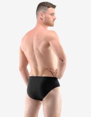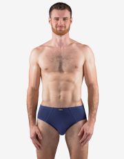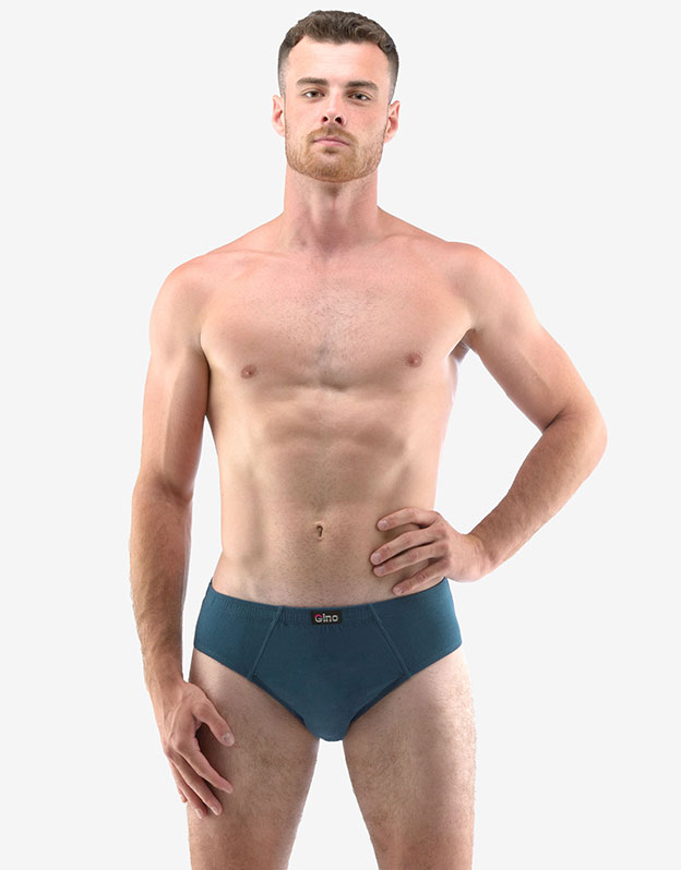 Slipy z szerszymi biodrami, bielizna męska szyta. W pasie wszyta jest szersza gumka. W nogawkach wszyta jest wąska gumka. Slipy są jednokolorowe.