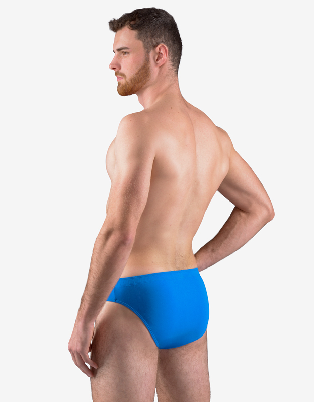 Slipy z wąskim bokiem, bielizna męska na miarę. W pasie wszyta jest szersza gumka. W nogawkach wszyta jest wąska gumka. Slipy są jednokolorowe.