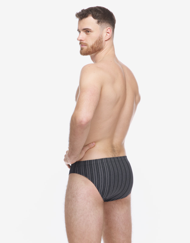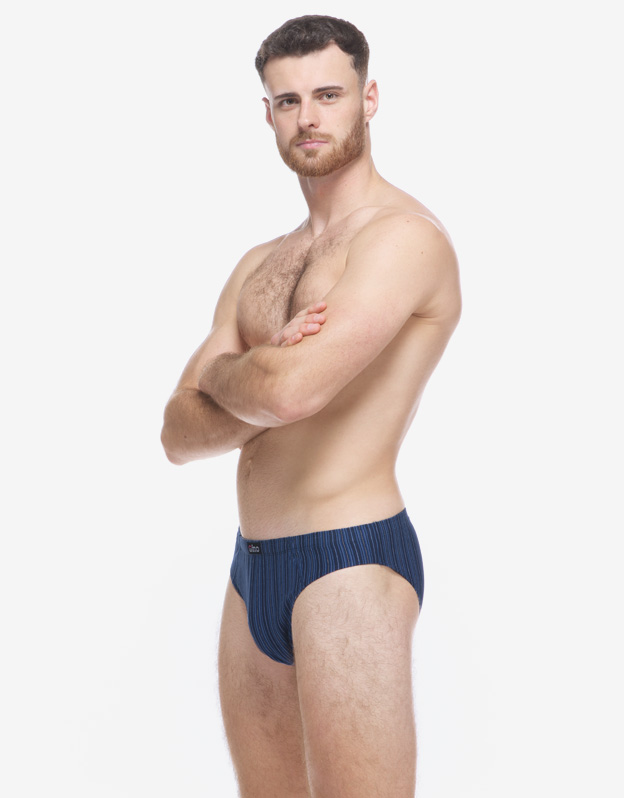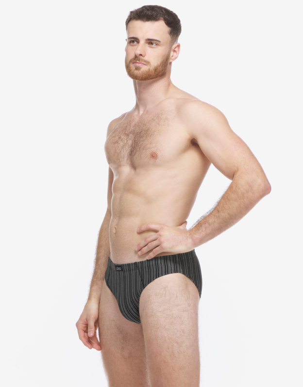 Slipy z wąskim bokiem w nowoczesnym kroju z tkanym wzorem subtelnego paska będą idealnym wyborem dla każdego, kto lubi naturalne materiały. Dzianina wykonana jest z włókna modalnego z bawełną, uzupełnionego włóknami elastanu. Materiał jest elastyczny, wygodny i idealny do codziennego noszenia.