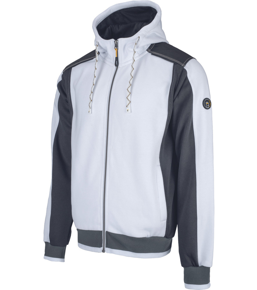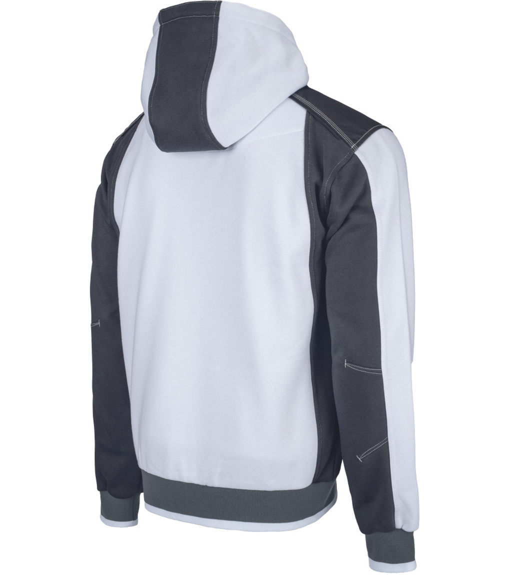 Opis: męska bluza z kapturem zapinana na zamek błyskawiczny • od wewnątrz szczotkowana dzianina frotte • wygodny, dopasowany krój • na ramionach wzmocnienia z tkaniny Oxford • 2 boczne kieszenie • odblaskowe elementy ton w ton • elastyczne ściągacze przy mankietach i obszyciu u dołu