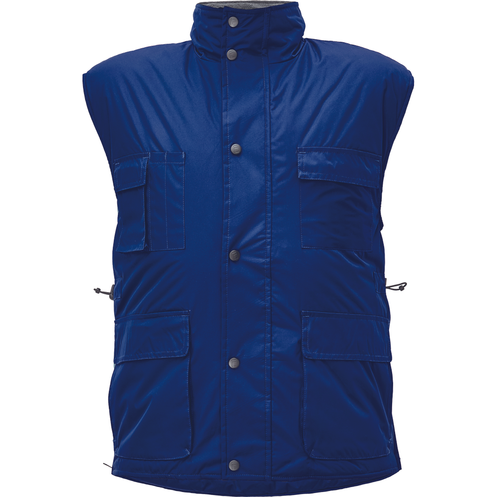 Opis: • wodoodporna, ocieplana kamizelka • przedłużany tył • tkanina wykonana z mieszanki nylonowych włókien, z wykończeniem RipStop • dół kamizelki z możliwością regulacji obwodu za pomocą elastycznego sznurka • dostosowana do haftu maszynowego • możliwość regulacji obwodu kamizelki za pomocą bocznych suwaków