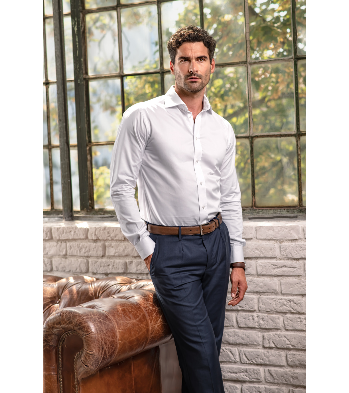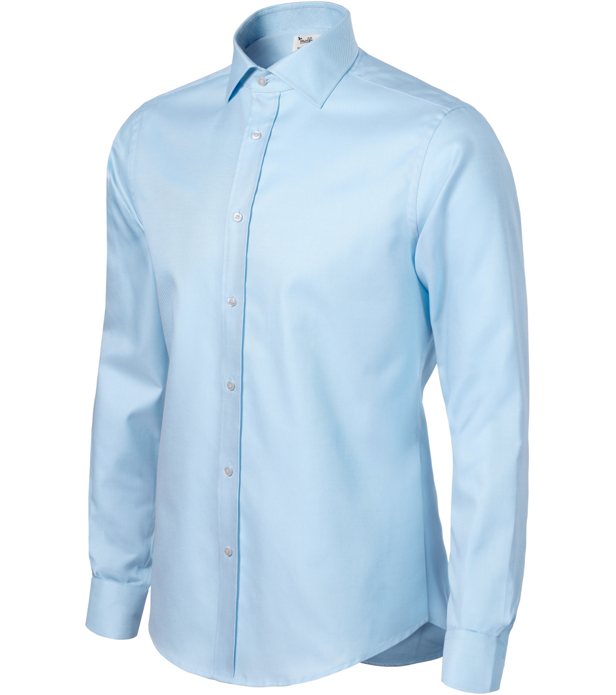 Koszula męska zaprojektowana przez czołowego czeskiego krawca Romana Humlíčka, wykonana z wyjątkowo długowłóknistej przędzy, zwężany krój ze szwami bocznymi, podwójne zaszewki i zaszewki z tyłu, dwuczęściowy kołnierzyk koszulowy, wzmocnione końcówki kołnierzyka, przednie krawędzie wykończone lamówką, długie rękawy z okrągłym mankietem z 2 guzikami, guziki z masy perłowej w kolorze 00 (2 zapasowe), profilowany dolny brzeg.