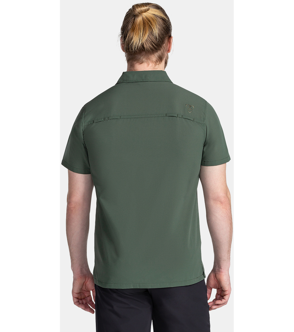 Męska koszula z krótkim rękawem Kilpi BOMBAY-M jest wykonana z lekkiego, przewiewnego materiału OPTI-DRY pochodzącego z recyklingu z funkcją szybkiego schnięcia, dzięki czemu nadaje się do letnich wędrówek, lekkich sportów lub codziennego noszenia w mieście. Panom z pewnością przypadnie do gustu klasyczny krój z zapięciem na guziki, kołnierzykiem i praktyczną kieszenią na piersi. Z tyłu znajdują się otwory wentylacyjne dla lepszej oddychalności.