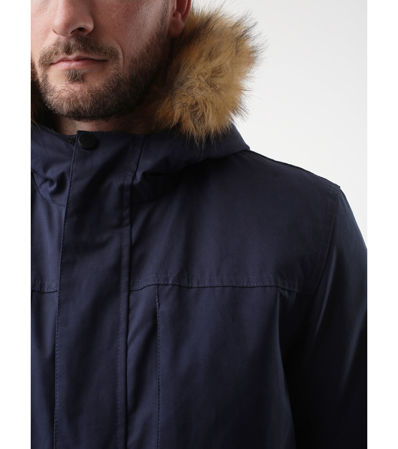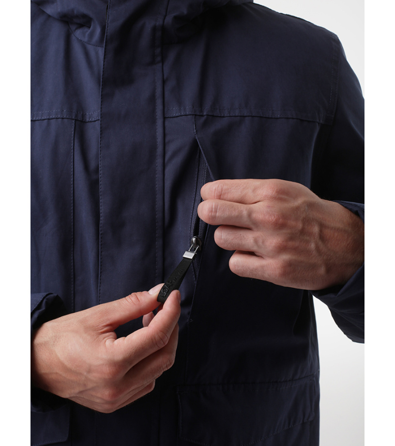 Męski płaszcz zimowy z kapturem NATAN przeznaczony jest do noszenia na co dzień w mieście, ma klasyczny krój. Płaszcz jest wodoodporny (wysokość słupa wody 3000 mm, oddychalność 800 g/m2/h) z funkcjonalną membraną AQUA PRO. Wierzch kurtki wykonany jest ze wzmocnionych włókien syntetycznych STORMEX, które niezawodnie wytrzymują ostry wiatr i deszcz. Wypełnienie wykonane jest z pustych włókien POLYTHERM, które nie tylko rozgrzewają, ale również mają doskonałą pamięć kształtu. Ta poprawia izolację i poczucie komfortu podczas noszenia. Rękawy zapinane są na rzep, a dolna krawędź płaszcza jest klasyczna bez ściągania. Główny zamek płaszcza jest zakryty dla ochrony przed wiatrem, a suwaki można regulować po obu stronach. Kaptur jest nieodpinany z odpinanym sztucznym futerkiem. Telefon, klucze i inne drobiazgi możesz wygodnie schować w trzech kieszeniach (dwie po bokach i jedna na piersi). Prać w 30°C bez zmiękczacza do tkanin.