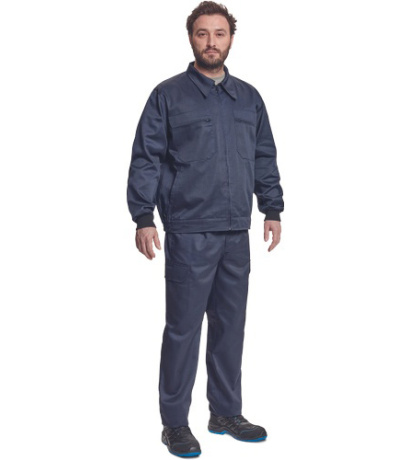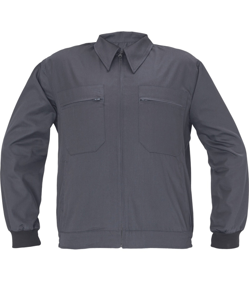 Opis: męska kurtka robocza; 2 kieszenie napiersiowe zapinane na suwak; 2 kieszenie boczne; elastyczne mankiety; 20 % bawełna + 80 % polyester