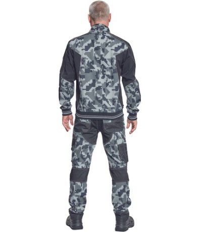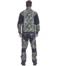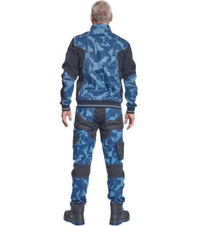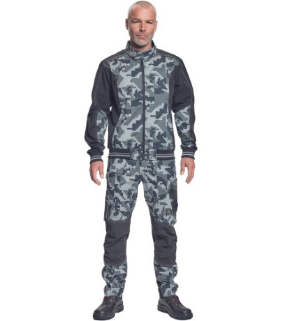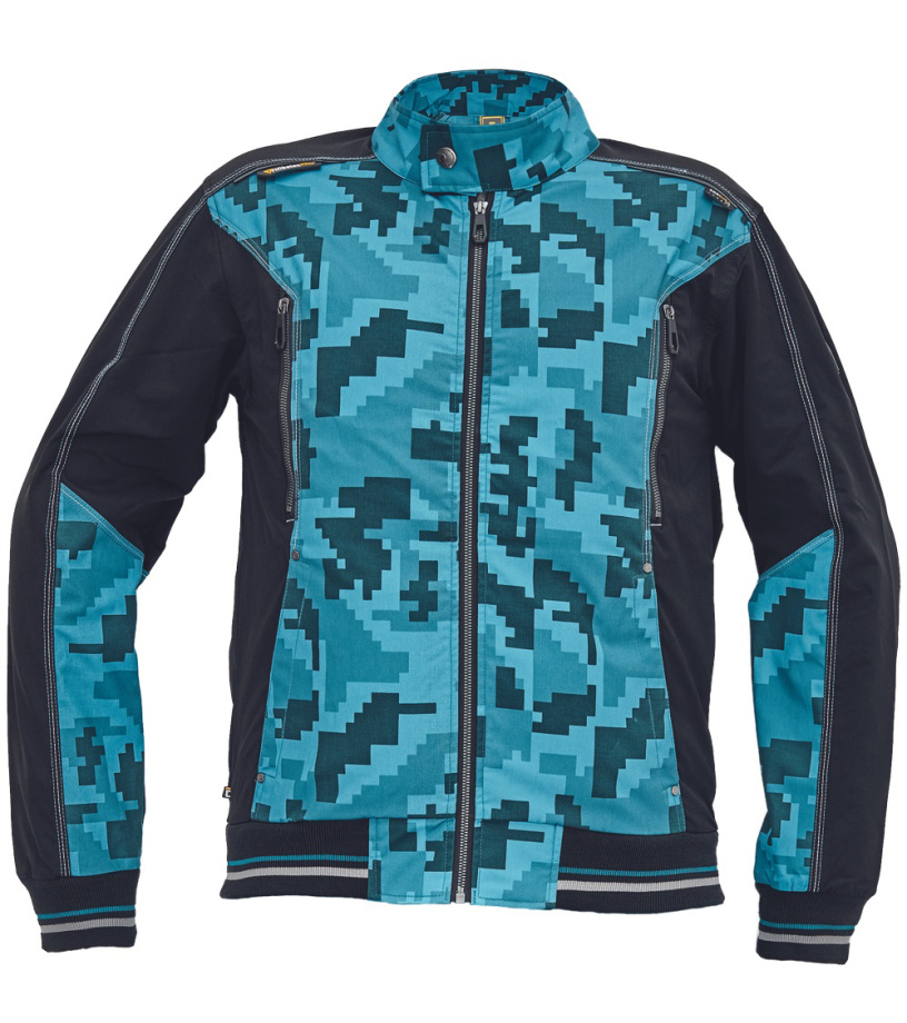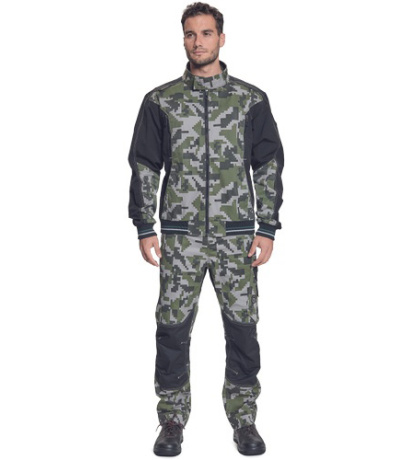 Opis: męska kurtka robocza ze stójką i zapięciem na zamek błyskawiczny; elastyczna innowacyjna tkanina Trifibetex® z nadrukiem moro w połączeniu z TrifibetexPRO® (czterokierunkowy nylon); atrakcyjny design i ergonomiczny krój; wzmocnienie ramion materiałem CORDURA; 2 kieszenie boczne; 2 kieszenie napiersiowe na suwak; mankiety zakończone elastycznymi ściągaczami z ozdobnymi paskami; dekoracyjne potrójne szwy; detale odblaskowe ton w ton